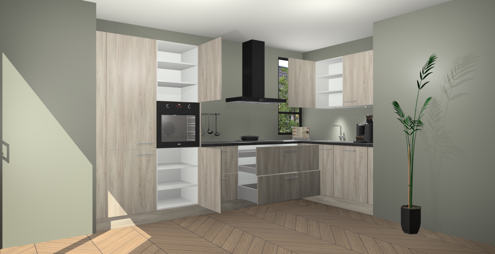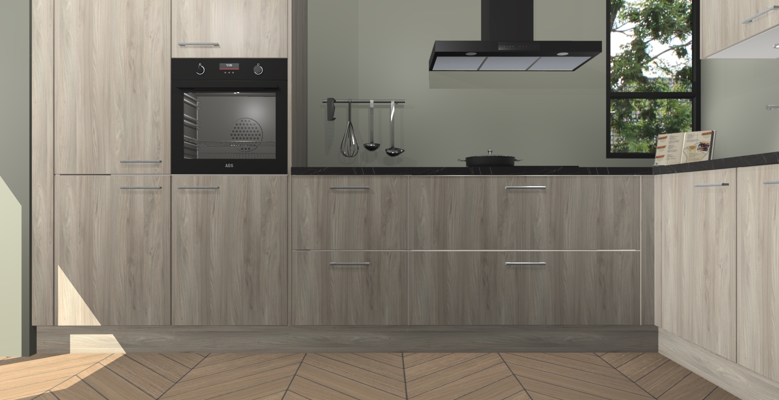 Welkom in uw nieuwe moderne keuken! Laat ons u voorstellen aan de Olm keuken Vlaanderen . Deze prachtige hoekkeuken straalt exclusiviteit en luxe uit als geen ander. Het strakke design, de tijdloze kleuren en het model maken van deze keuken een moderne klassieker. En met voldoende opbergruimte heeft deze keuken echt voor ieder wat wils.