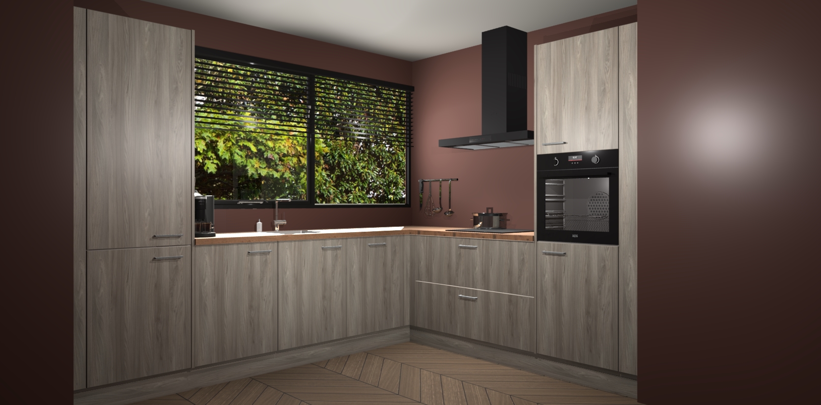 Met een modern, tijdloos design en ruime opslagruimte, zult u zich in no-time thuis voelen in uw nieuwe keuken. Uw leven wordt eenvoudiger met de soft-close deuren die voor het ultieme stille comfort zorgen - geen geluid dat u stoort terwijl u kookt. Ook is de keuken voorzien van 5 ingebouwde apparaten: een oven, inductie kookplaat, afzuigkap, vaatwasser en koelkast. Deze kunnen gemakkelijk na bestelling worden bijgewerkt naar AEG - waardoor uw luxe ervaring compleet is.