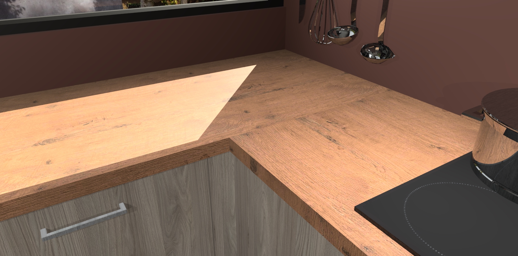 - Bij een hoekwerkblad zijn de hoeken in gevreesd en op maat gemaakt