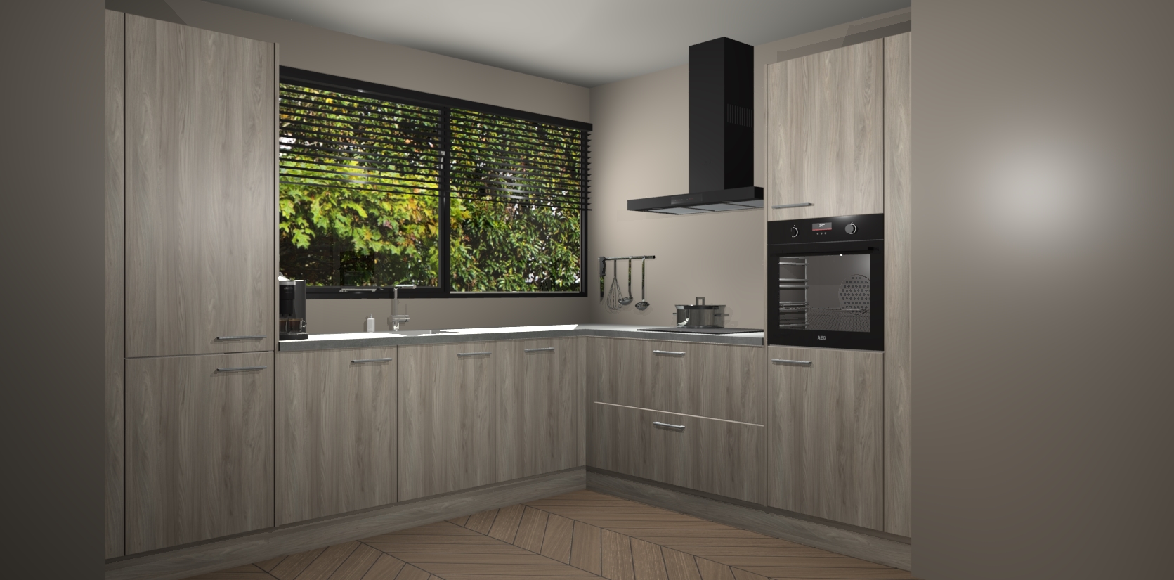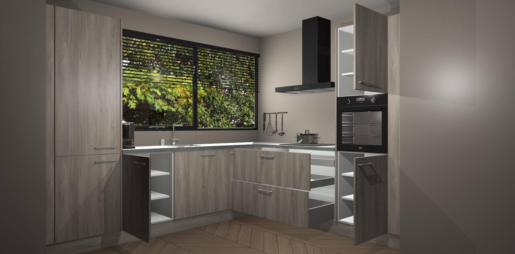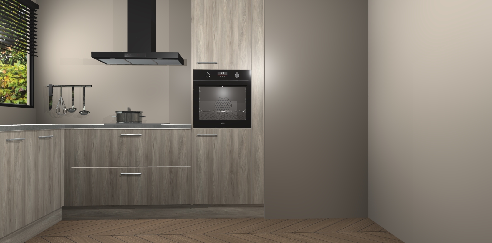 Met een modern, tijdloos design en ruime opslagruimte, zult u zich in no-time thuis voelen in uw nieuwe keuken. Uw leven wordt eenvoudiger met de soft-close deuren die voor het ultieme stille comfort zorgen - geen geluid dat u stoort terwijl u kookt. Ook is de keuken voorzien van 5 ingebouwde apparaten: een oven, inductie kookplaat, afzuigkap, vaatwasser en koelkast. Deze kunnen gemakkelijk na bestelling worden bijgewerkt naar AEG - waardoor uw luxe ervaring compleet is.
