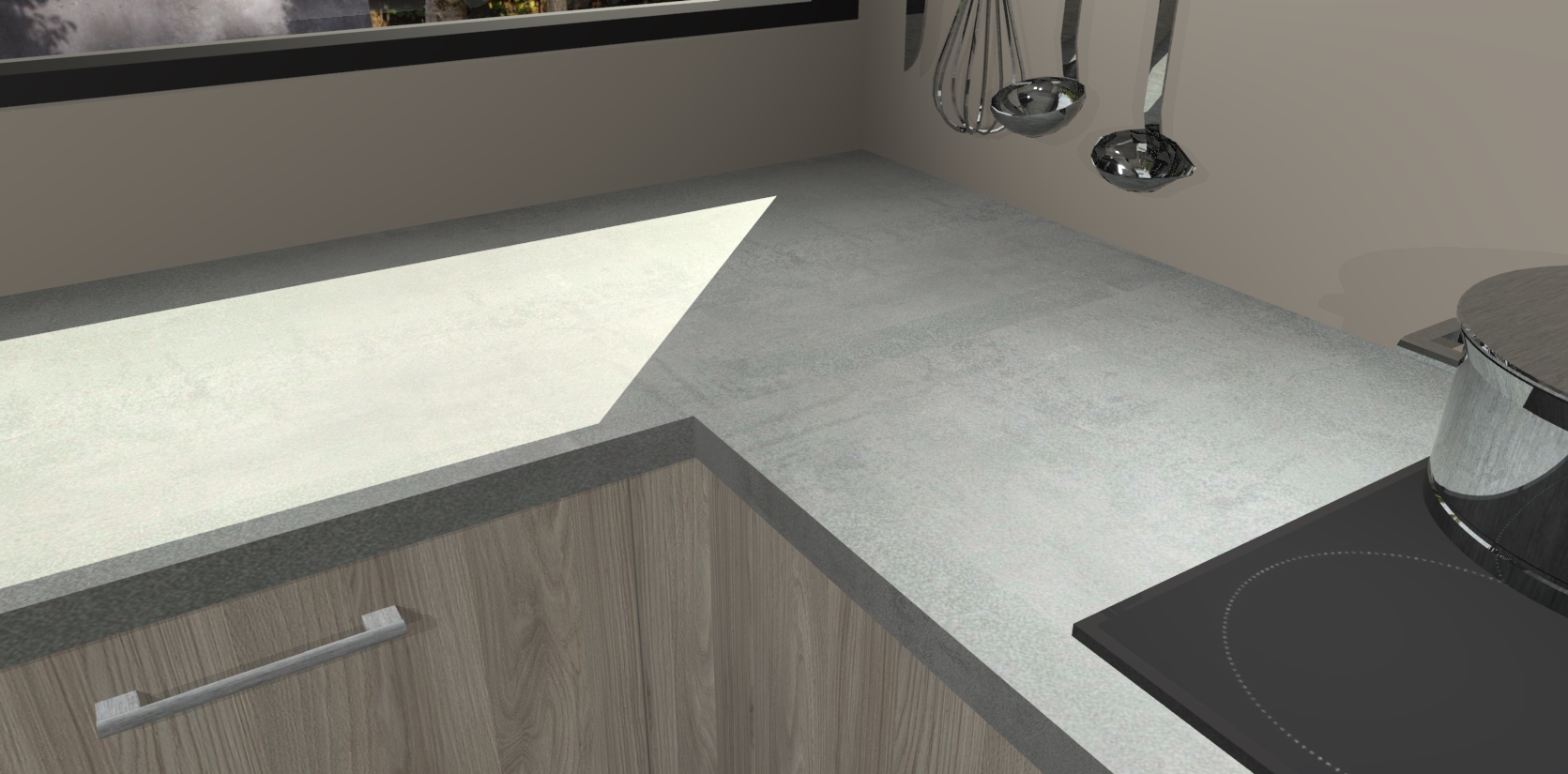 - Bij een hoekwerkblad zijn de hoeken in gevreesd en op maat gemaakt