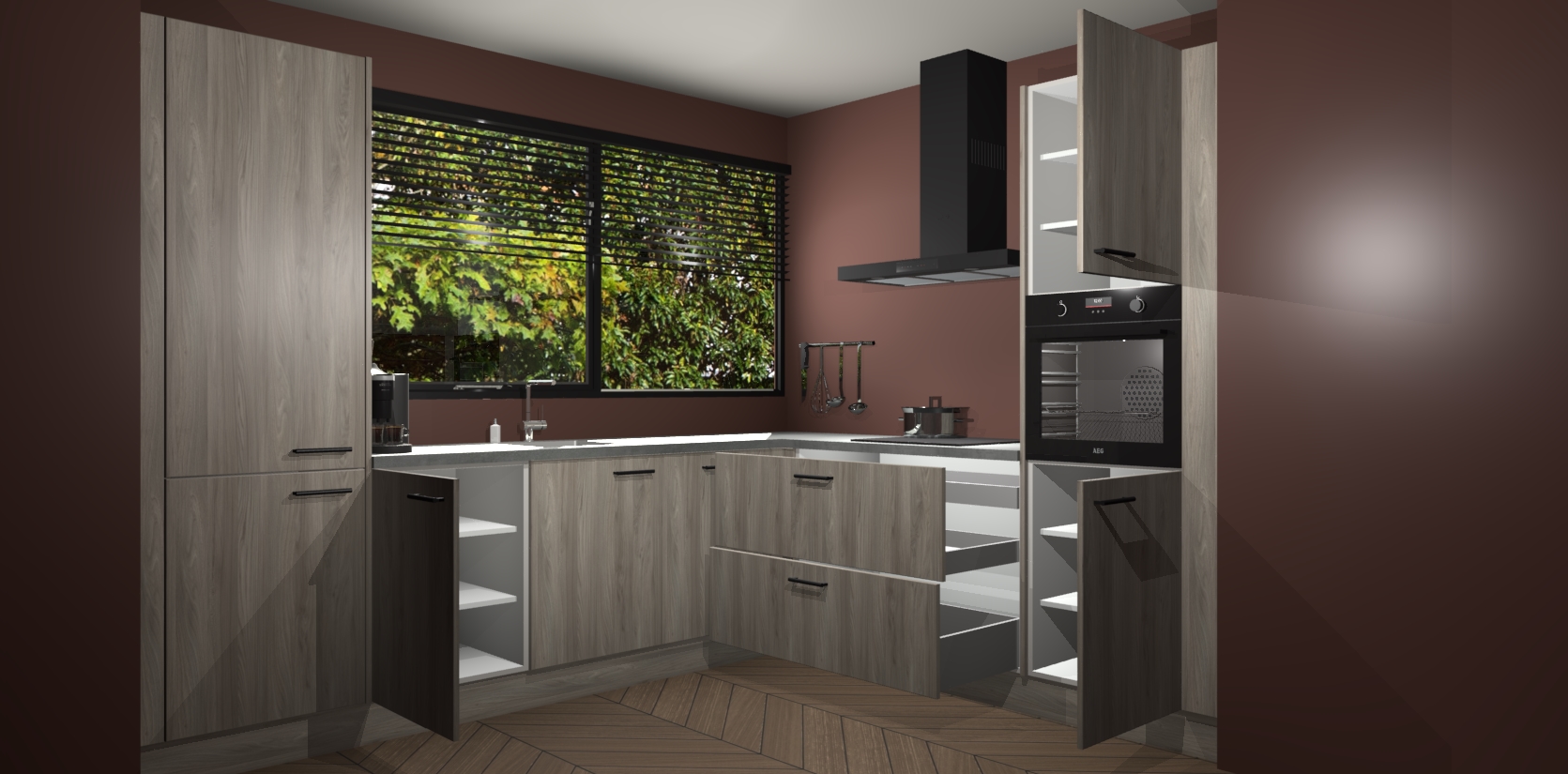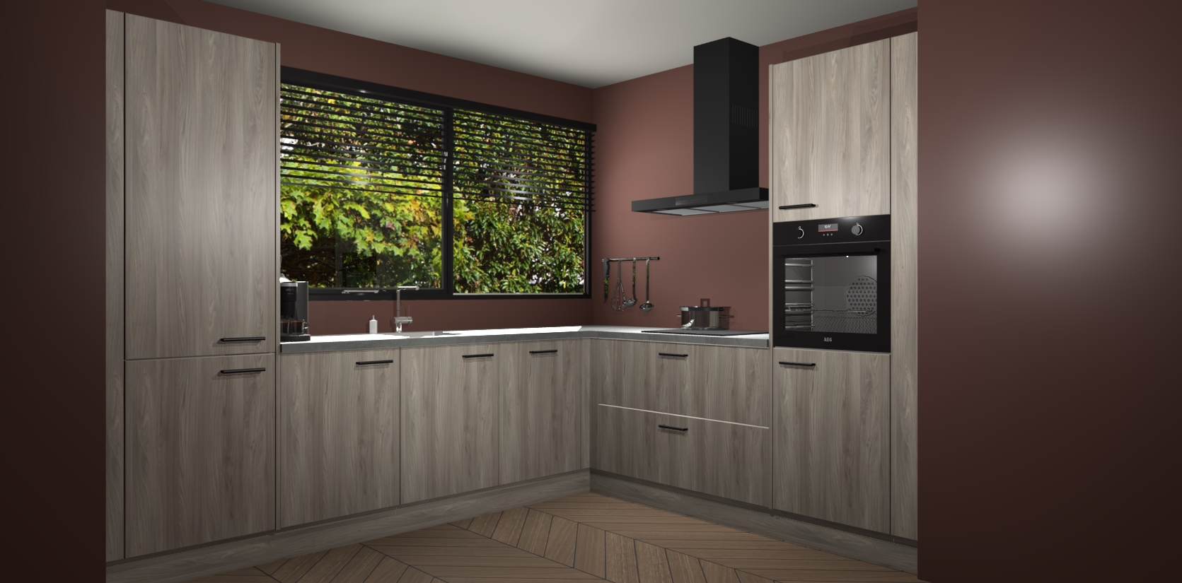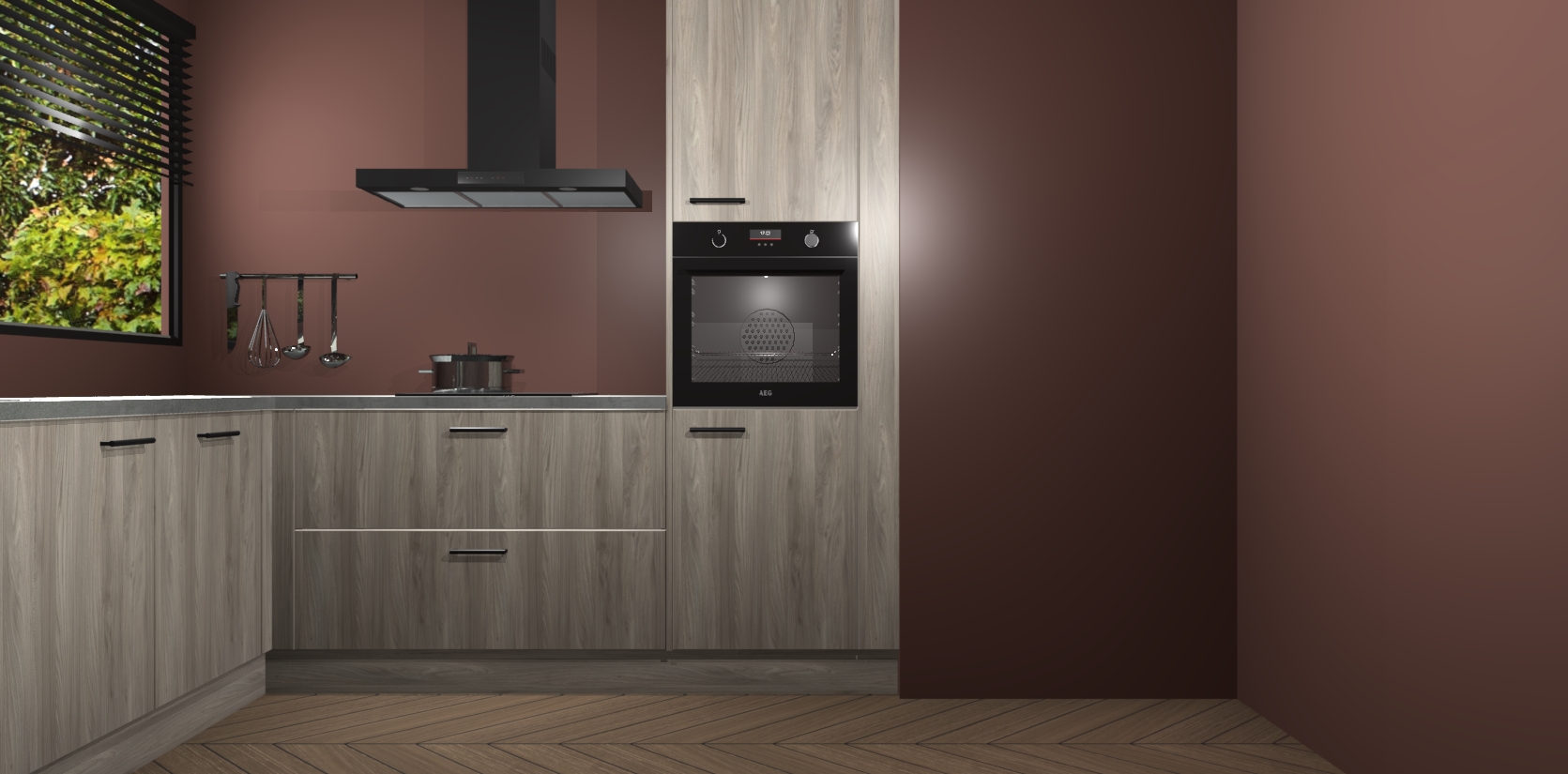 Met een modern, tijdloos design en ruime opslagruimte, zult u zich in no-time thuis voelen in uw nieuwe keuken. Uw leven wordt eenvoudiger met de soft-close deuren die voor het ultieme stille comfort zorgen - geen geluid dat u stoort terwijl u kookt. Ook is de keuken voorzien van 5 ingebouwde apparaten: een oven, inductie kookplaat, afzuigkap, vaatwasser en koelkast. Deze kunnen gemakkelijk na bestelling worden bijgewerkt naar AEG - waardoor uw luxe ervaring compleet is.