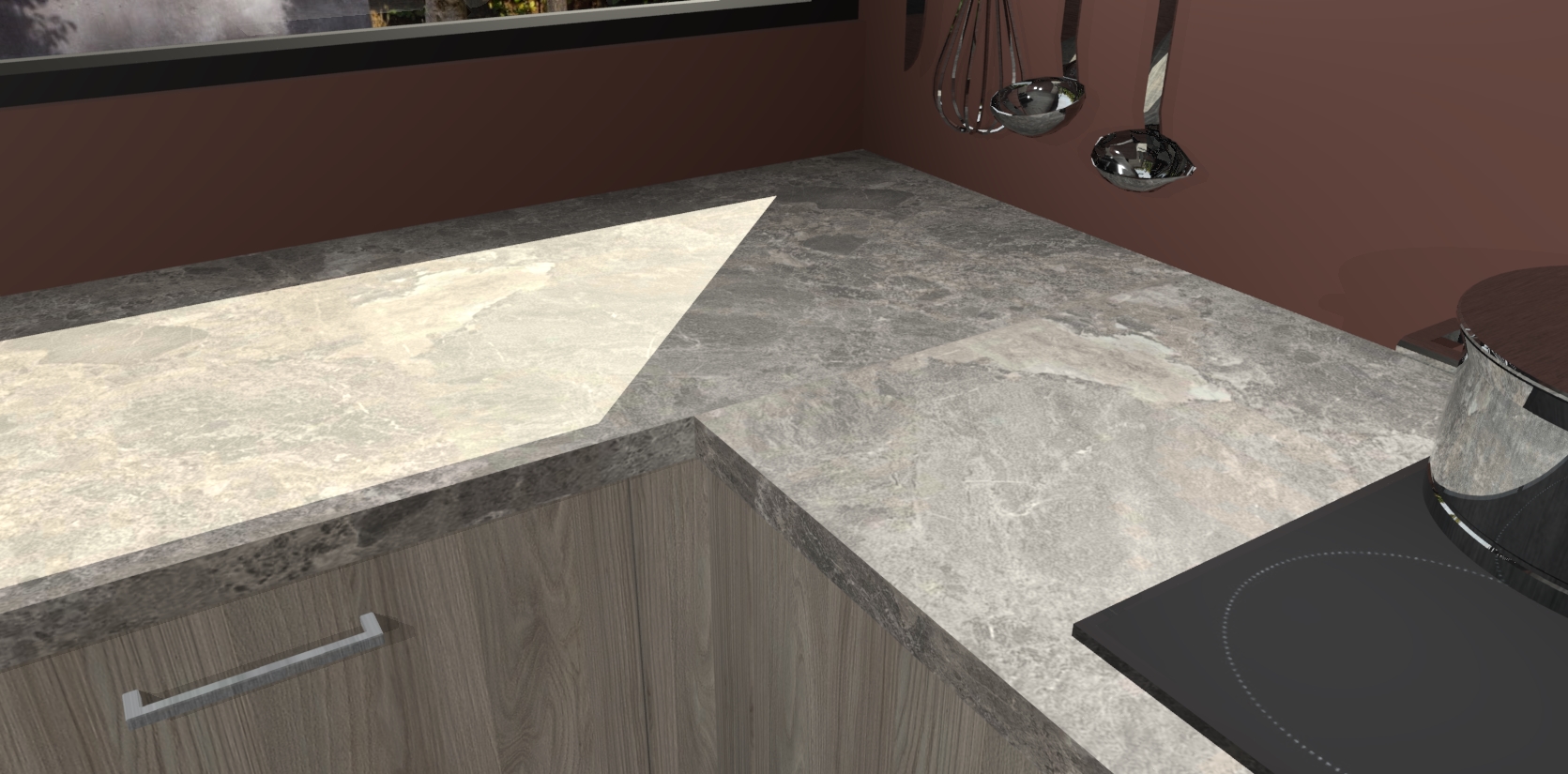 - Bij een hoekwerkblad zijn de hoeken in gevreesd en op maat gemaakt