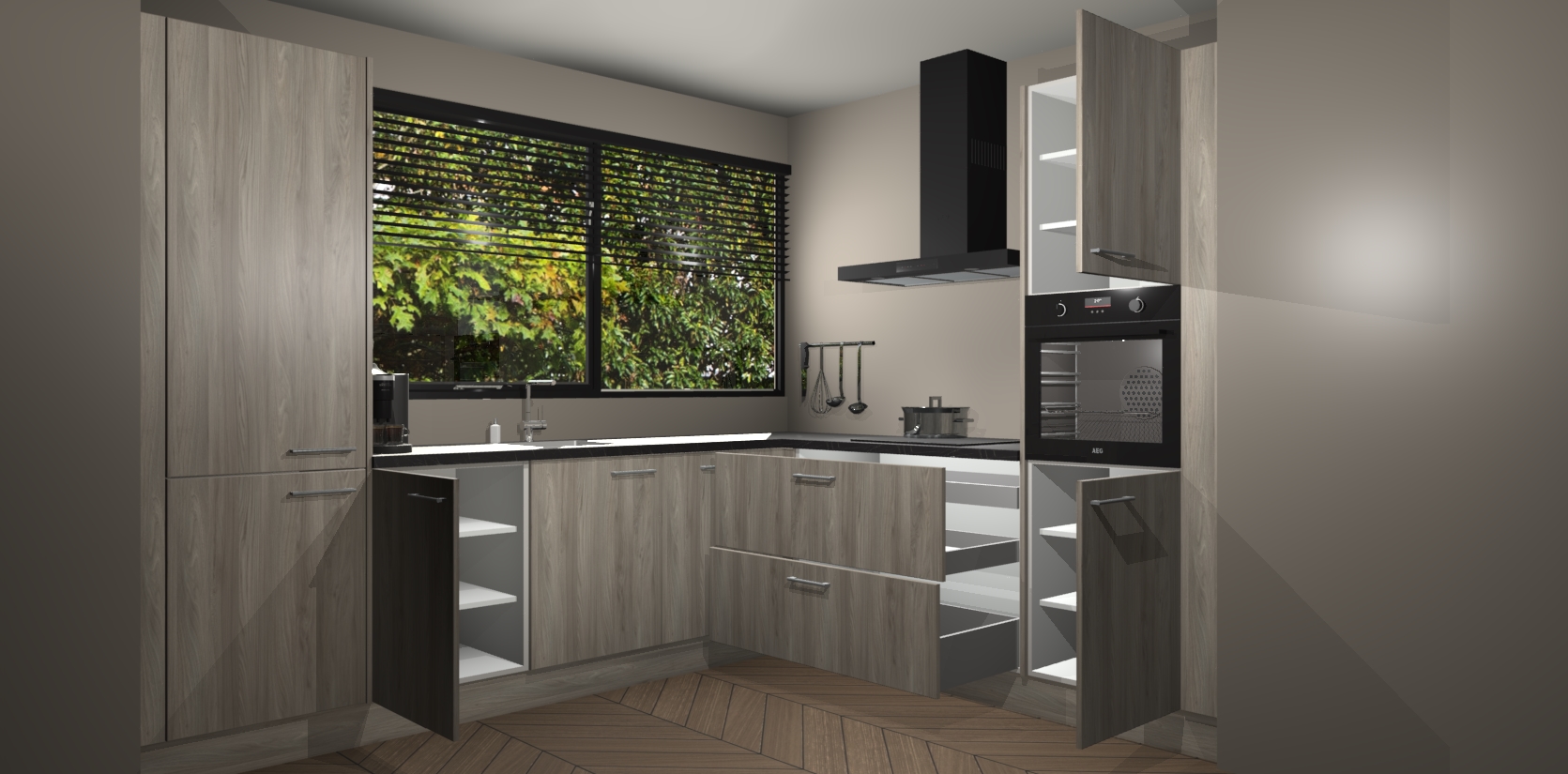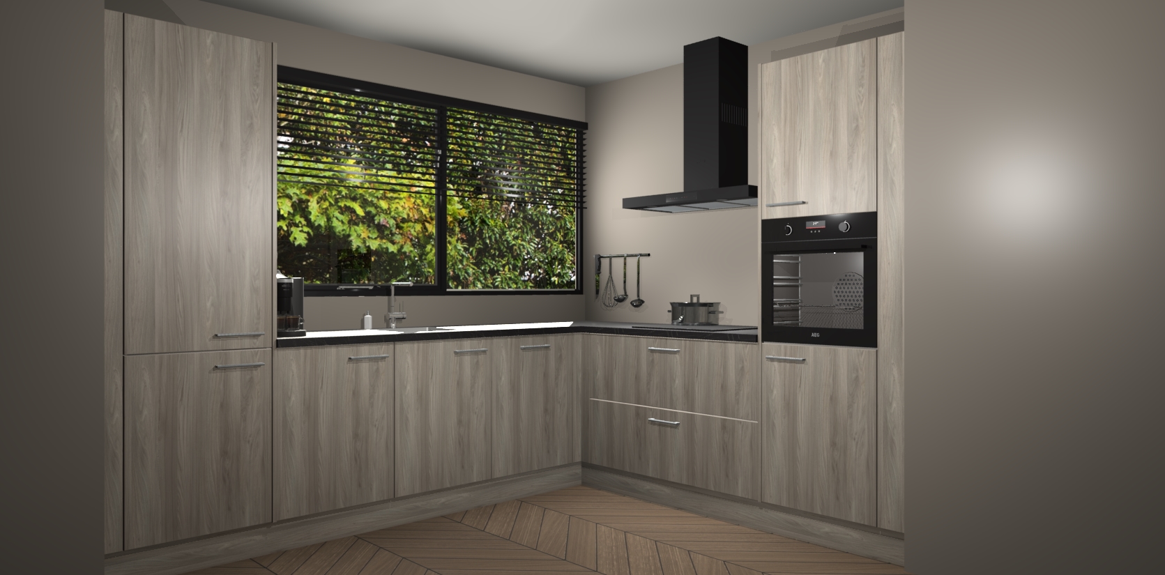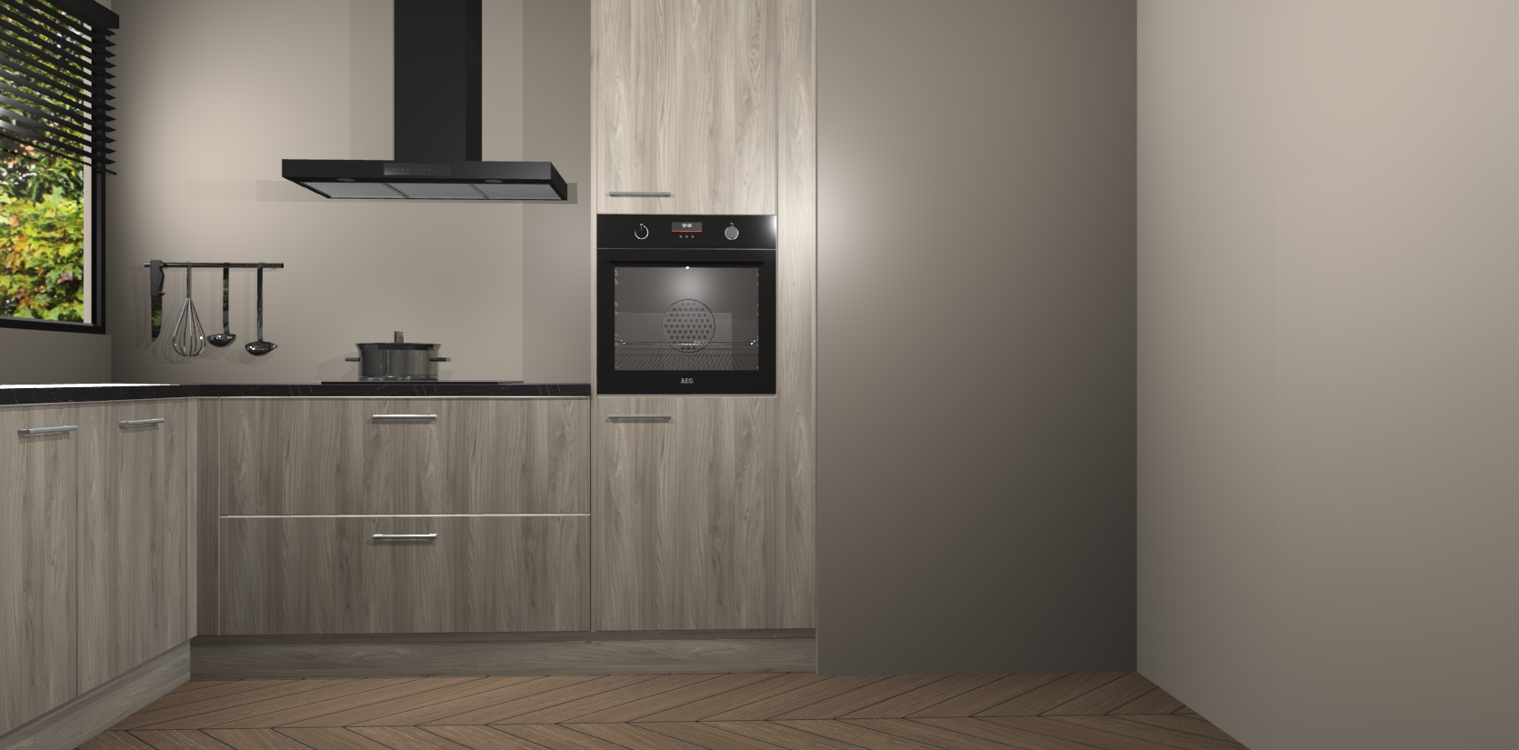 Met een modern, tijdloos design en ruime opslagruimte, zult u zich in no-time thuis voelen in uw nieuwe keuken. Uw leven wordt eenvoudiger met de soft-close deuren die voor het ultieme stille comfort zorgen - geen geluid dat u stoort terwijl u kookt. Ook is de keuken voorzien van 5 ingebouwde apparaten: een oven, inductie kookplaat, afzuigkap, vaatwasser en koelkast. Deze kunnen gemakkelijk na bestelling worden bijgewerkt naar AEG - waardoor uw luxe ervaring compleet is.