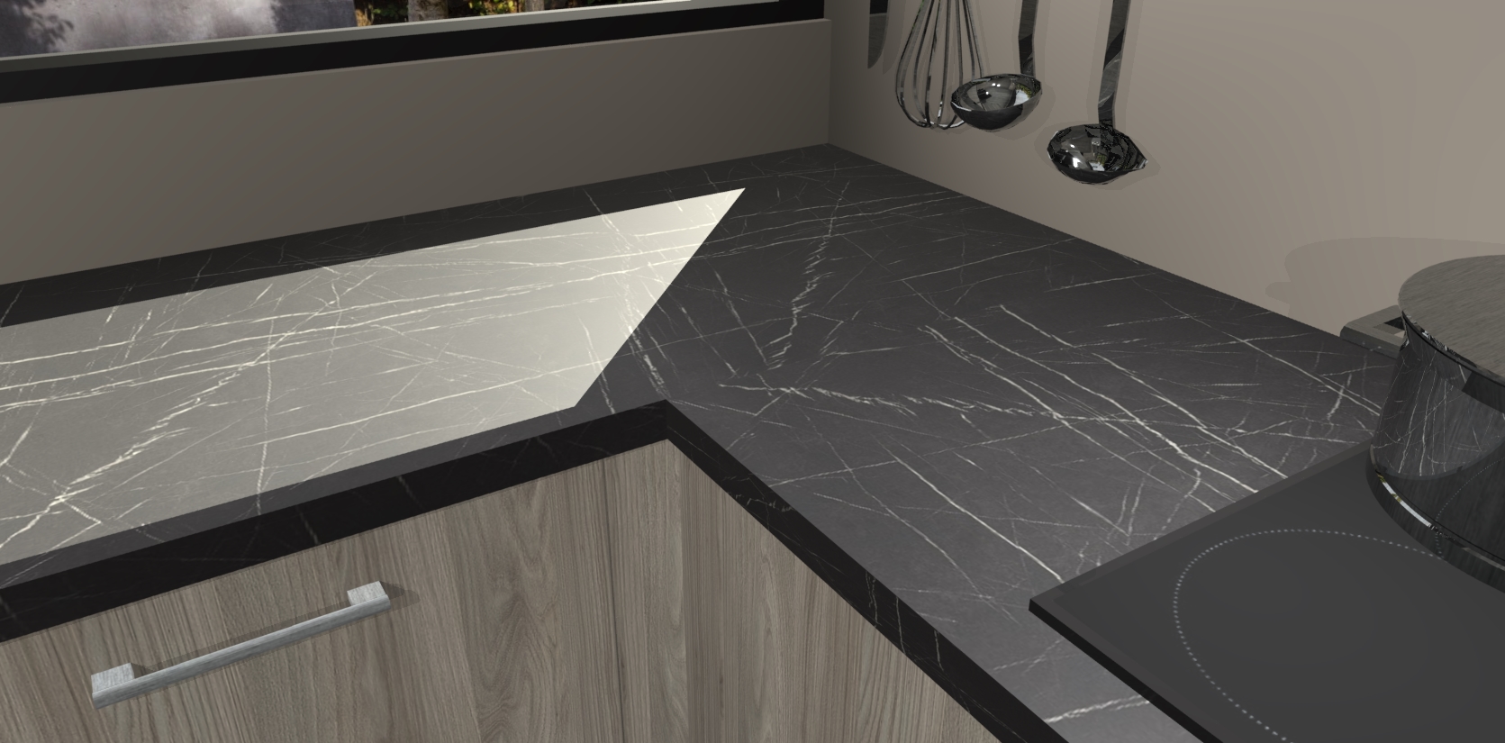 - Bij een hoekwerkblad zijn de hoeken in gevreesd en op maat gemaakt