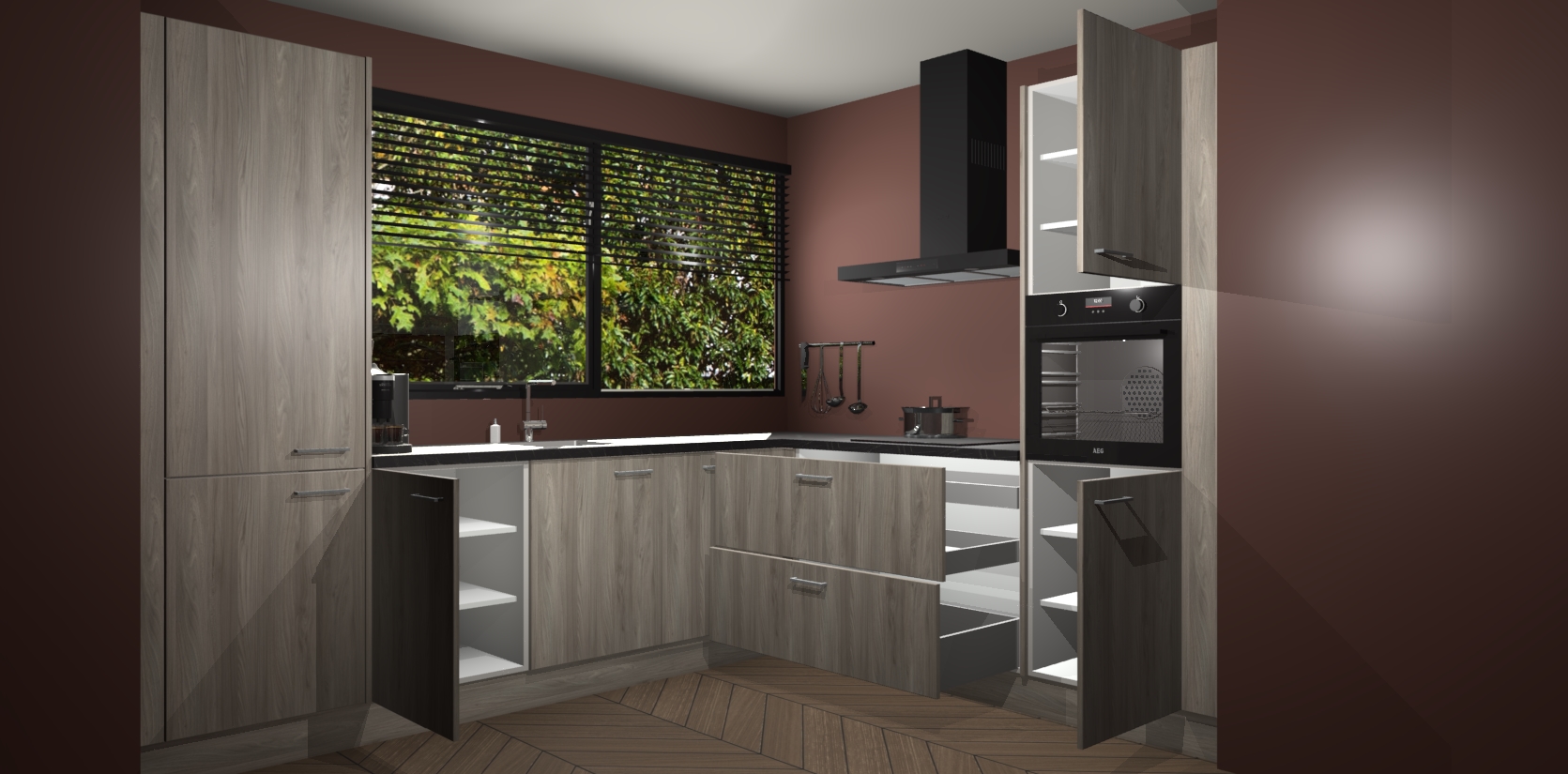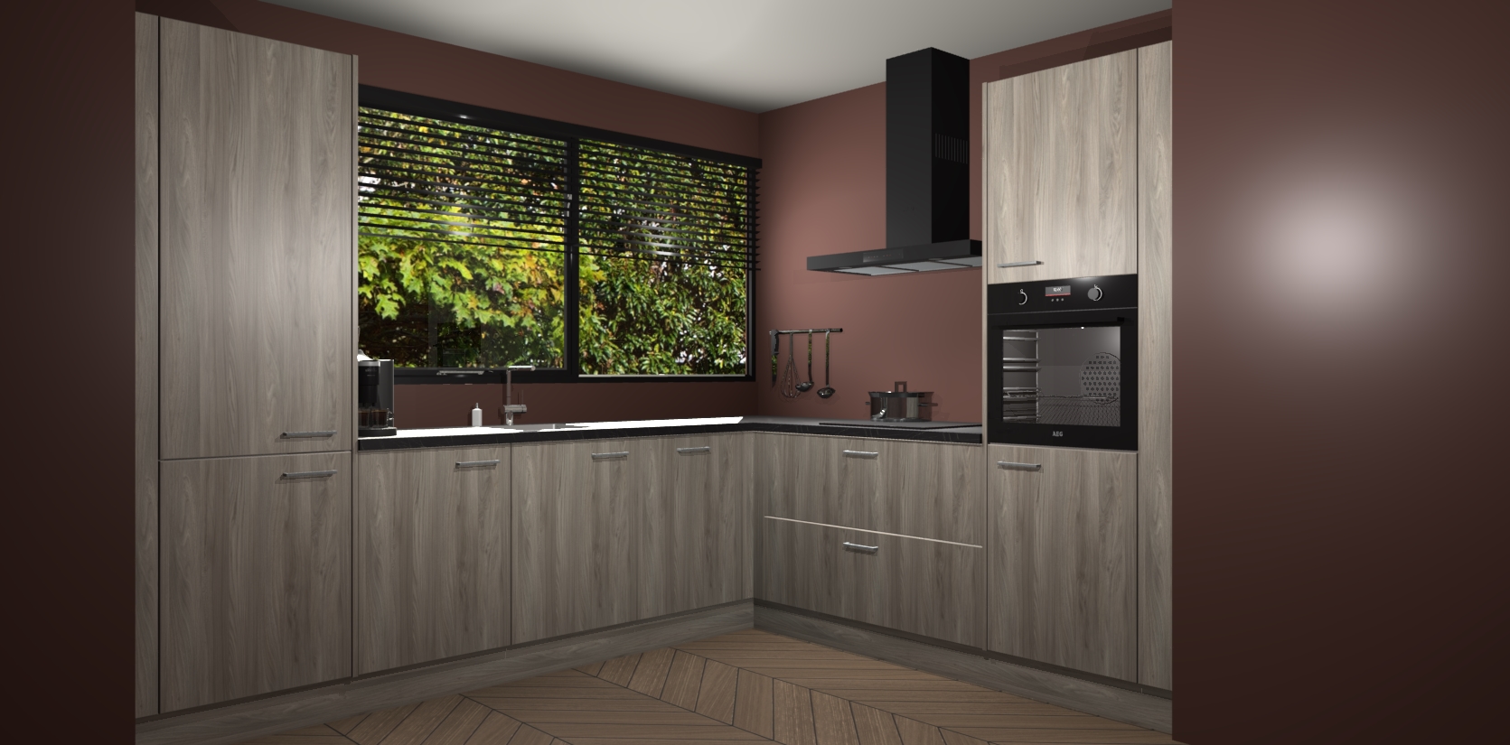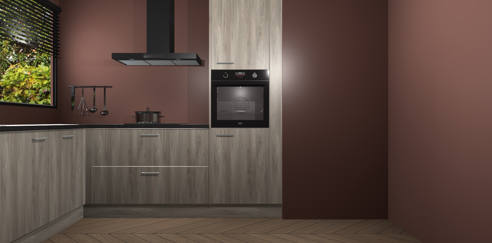 Met een modern, tijdloos design en ruime opslagruimte, zult u zich in no-time thuis voelen in uw nieuwe keuken. Uw leven wordt eenvoudiger met de soft-close deuren die voor het ultieme stille comfort zorgen - geen geluid dat u stoort terwijl u kookt. Ook is de keuken voorzien van 5 ingebouwde apparaten: een oven, inductie kookplaat, afzuigkap, vaatwasser en koelkast. Deze kunnen gemakkelijk na bestelling worden bijgewerkt naar AEG - waardoor uw luxe ervaring compleet is.