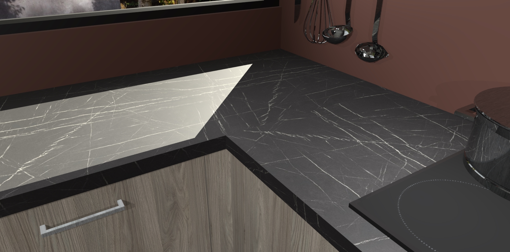 • Bij een hoekwerkblad zijn de hoeken in gevreesd en op maat gemaakt