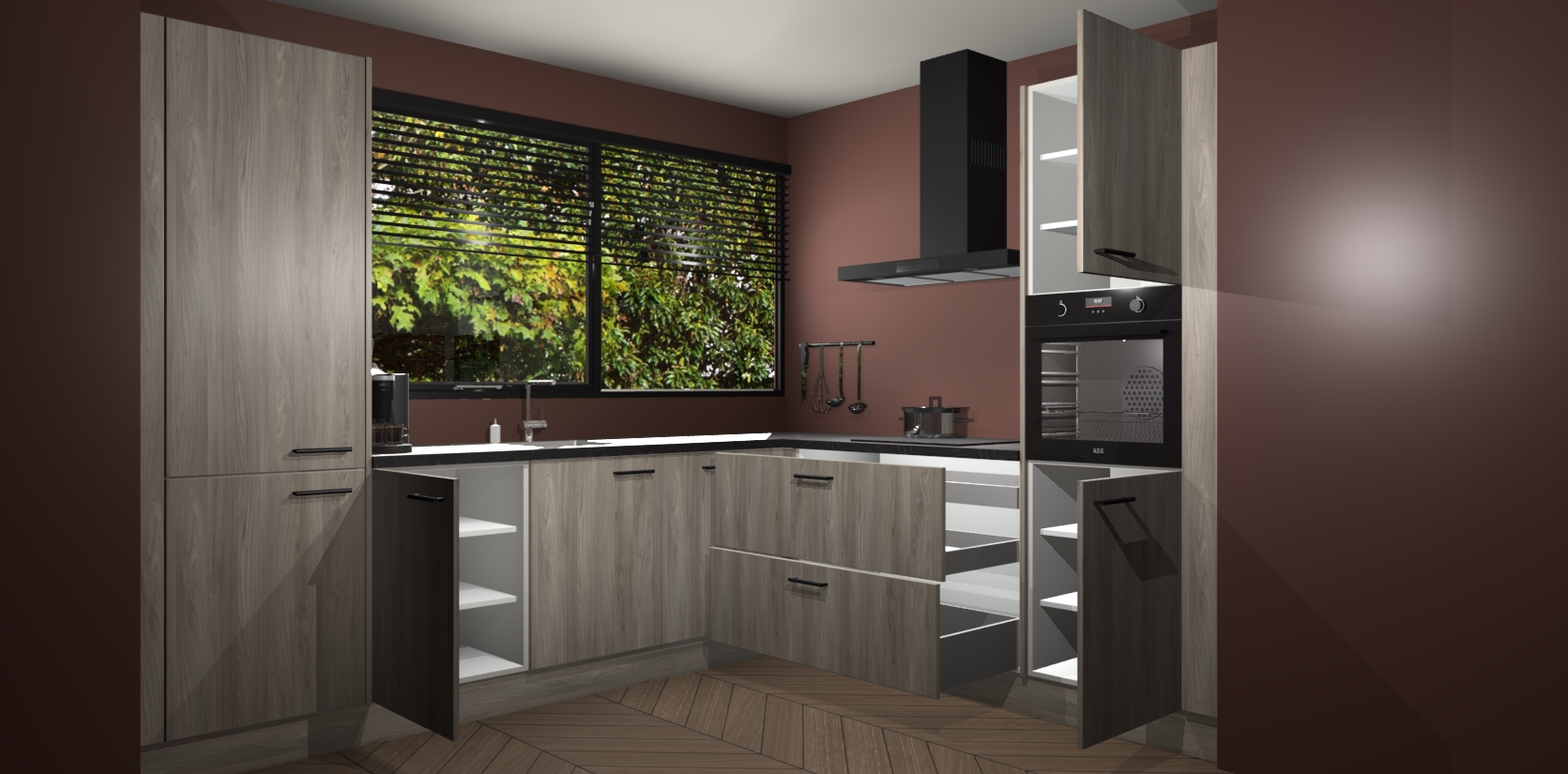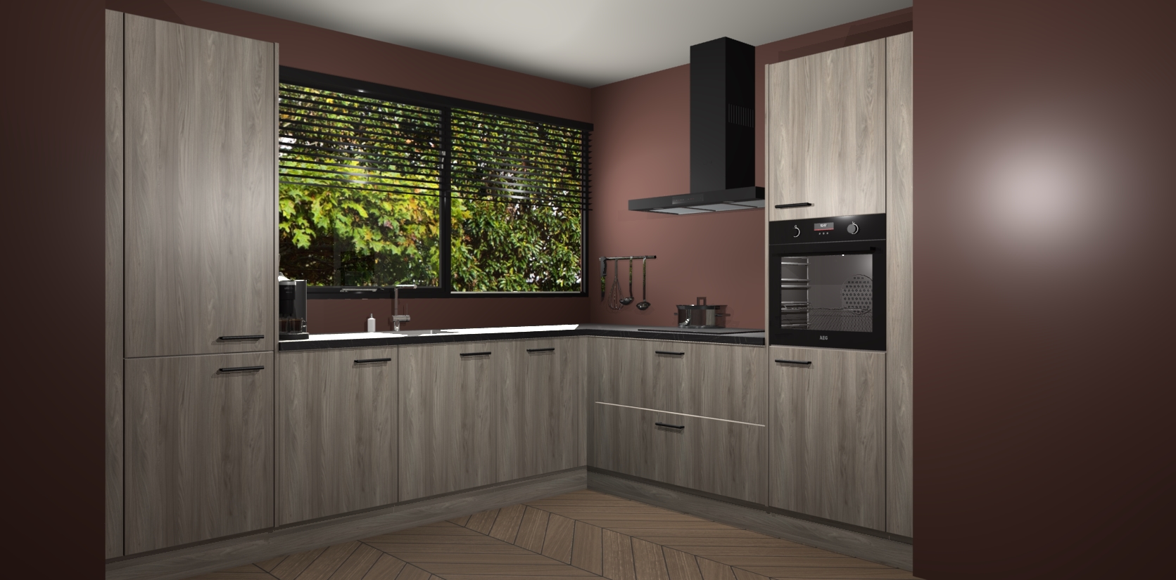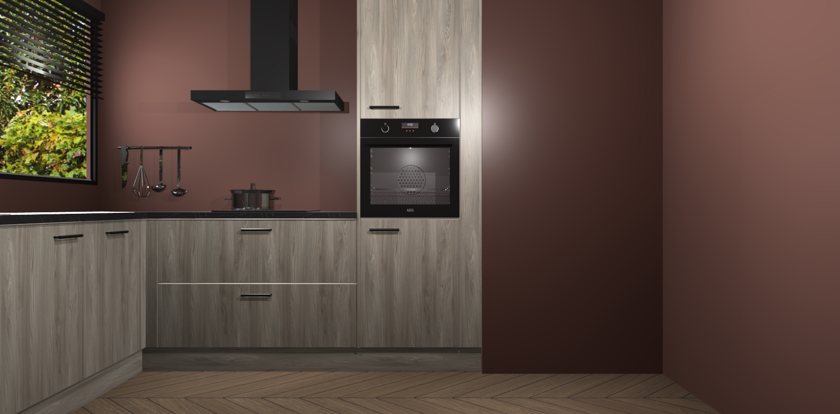 Met een modern, tijdloos design en ruime opslagruimte, zult u zich in no-time thuis voelen in uw nieuwe keuken. Uw leven wordt eenvoudiger met de soft-close deuren die voor het ultieme stille comfort zorgen - geen geluid dat u stoort terwijl u kookt. Ook is de keuken voorzien van 5 ingebouwde apparaten: een oven, inductie kookplaat, afzuigkap, vaatwasser en koelkast. Deze kunnen gemakkelijk na bestelling worden bijgewerkt naar AEG - waardoor uw luxe ervaring compleet is.