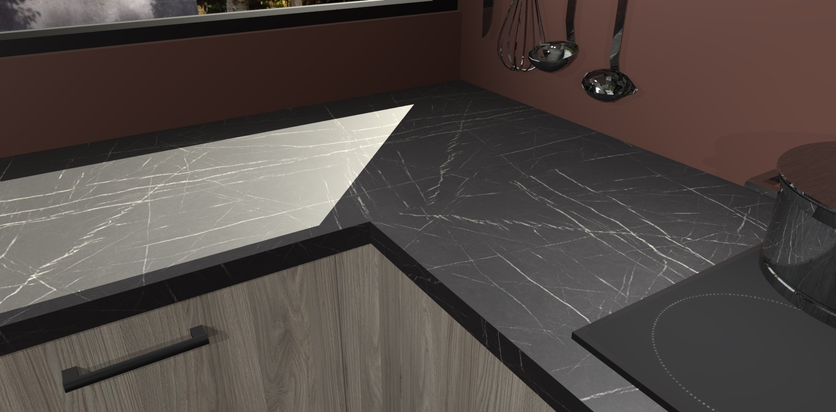 - Bij een hoekwerkblad zijn de hoeken in gevreesd en op maat gemaakt