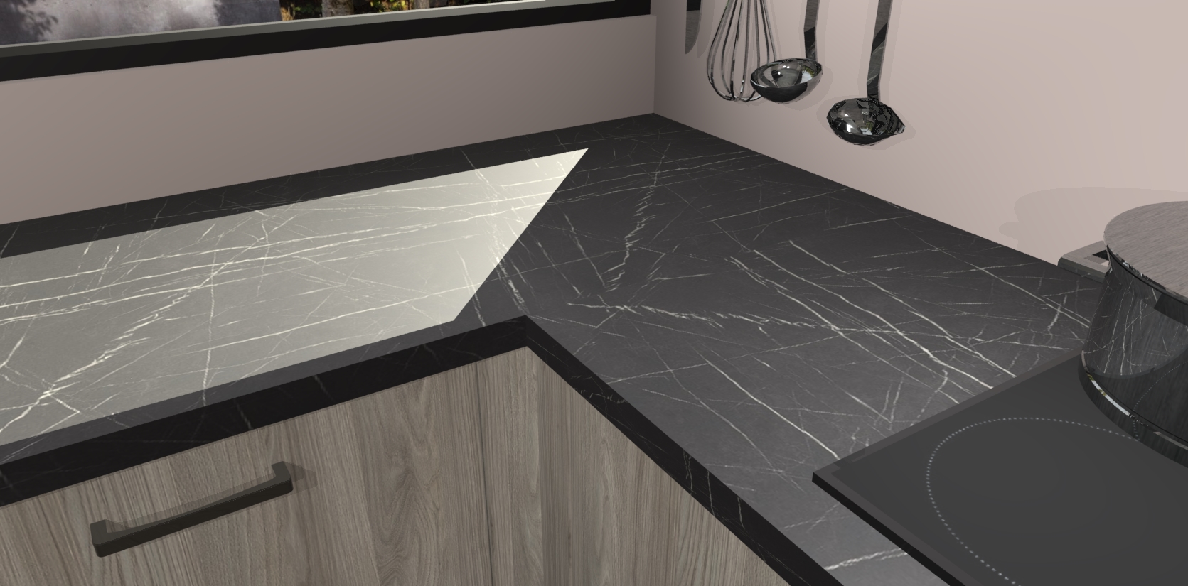 - Bij een hoekwerkblad zijn de hoeken in gevreesd en op maat gemaakt
