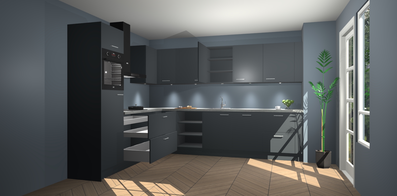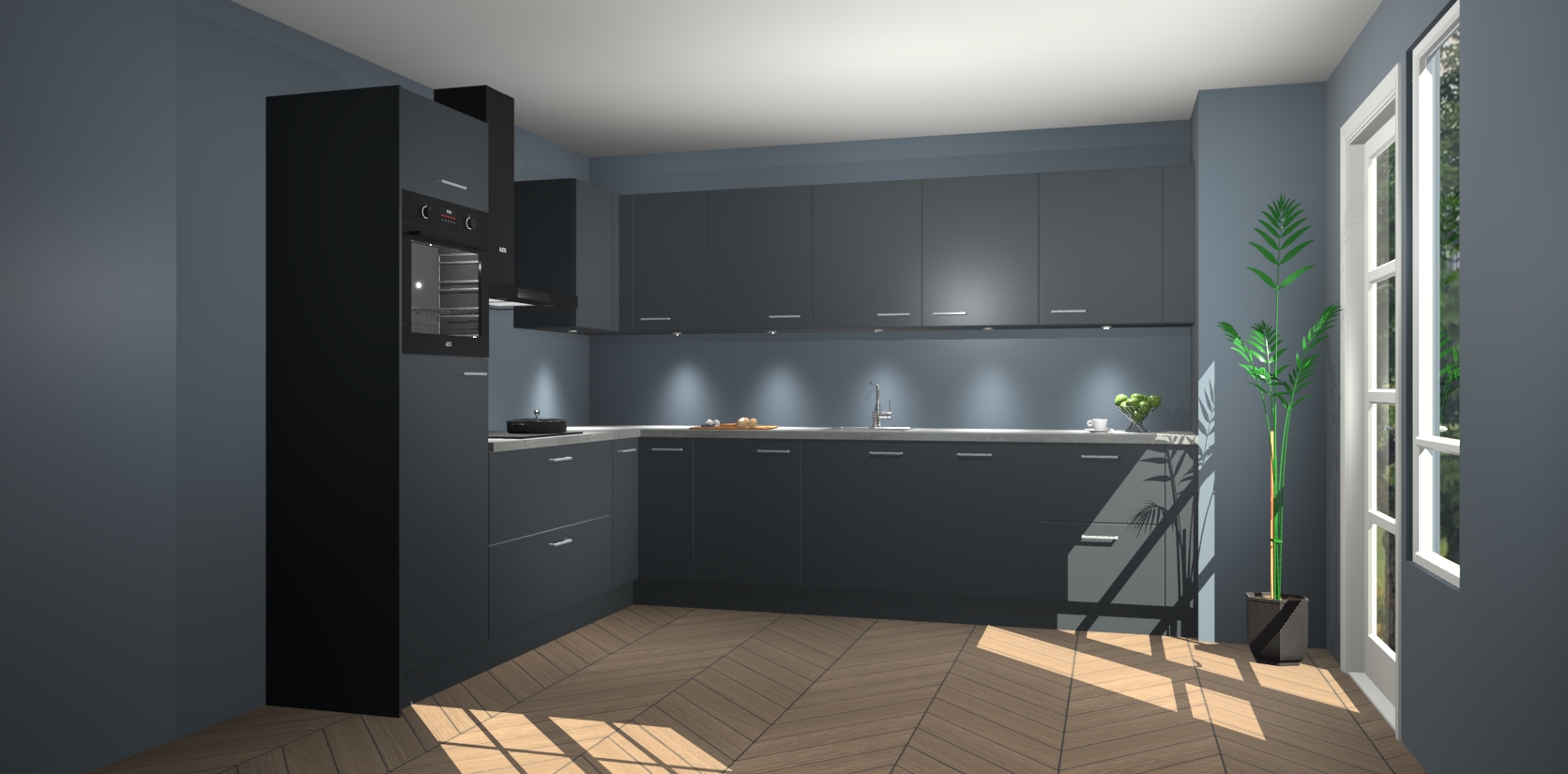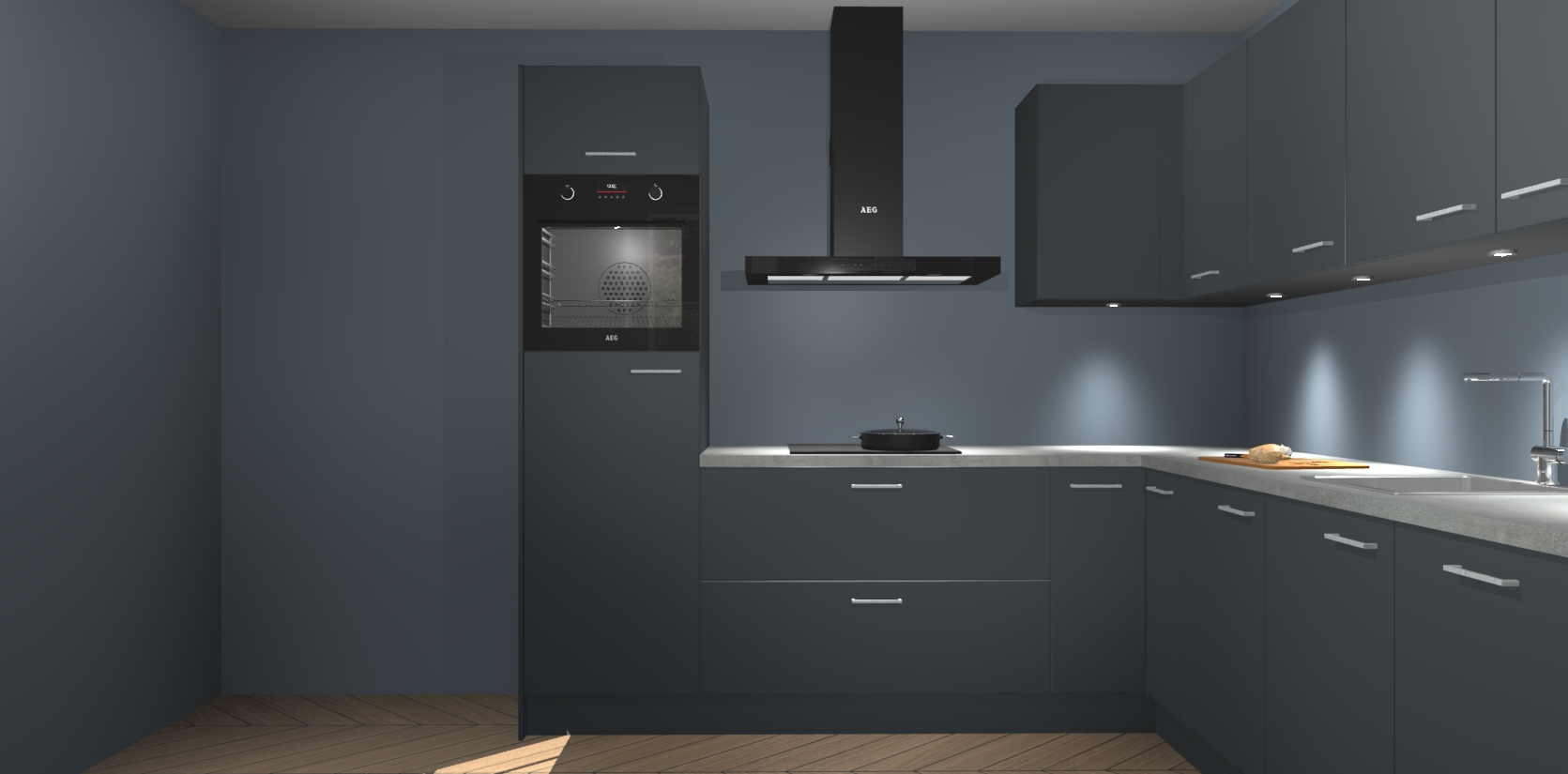 De Onyxygrijze keuken Debar is uitgerust met vijf inbouwapparaten die elke kooktaak handig en efficiënt maken. Een oven, inductiekookplaat, afzuigkap, vaatwasser en koelkast zijn standaard, maar kunnen na bestelling eenvoudig worden geupgrade naar AEG. Profiteer vervolgens van de softclose deuren voor snelle toegang en geruisloze toegang.