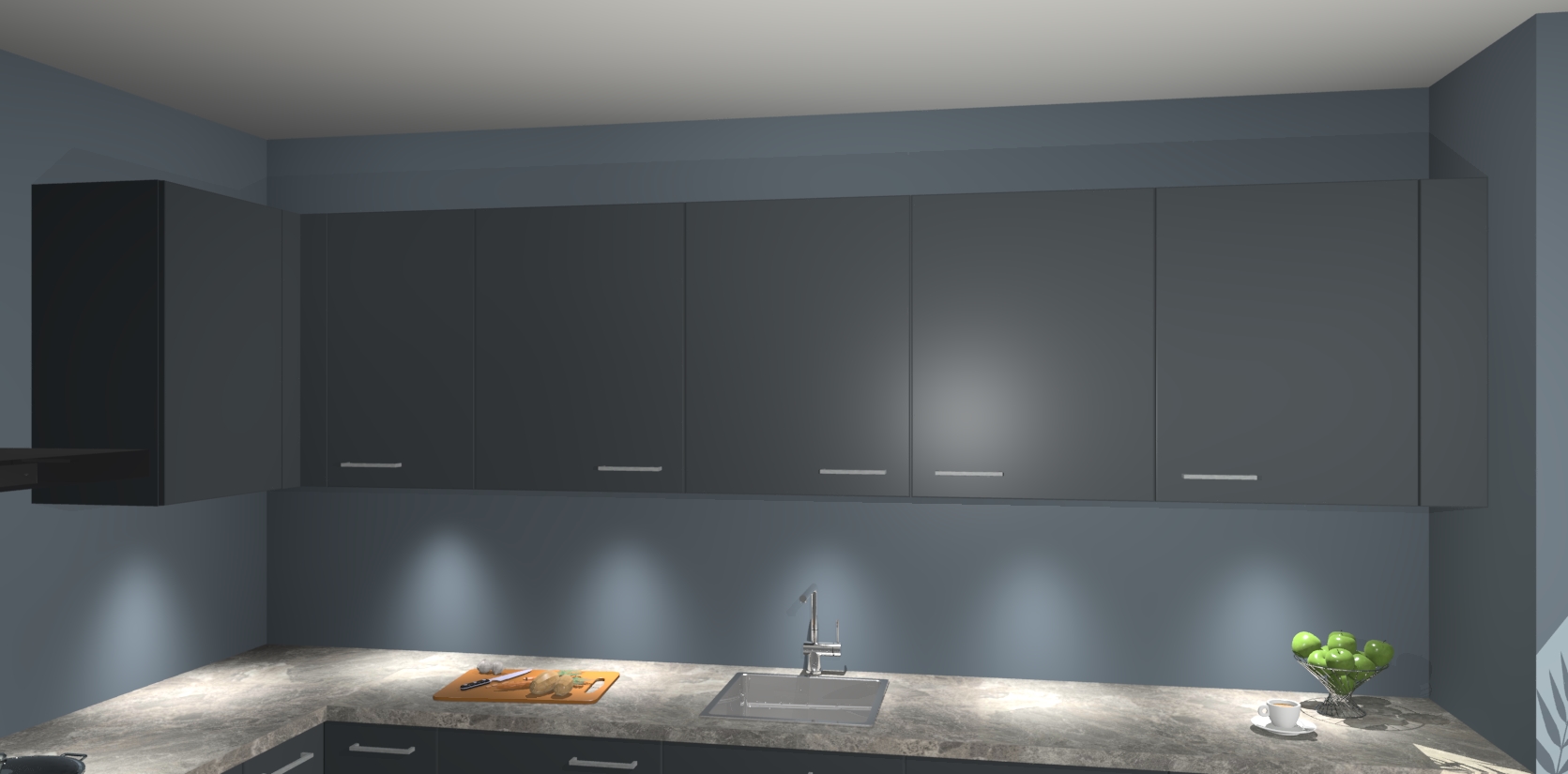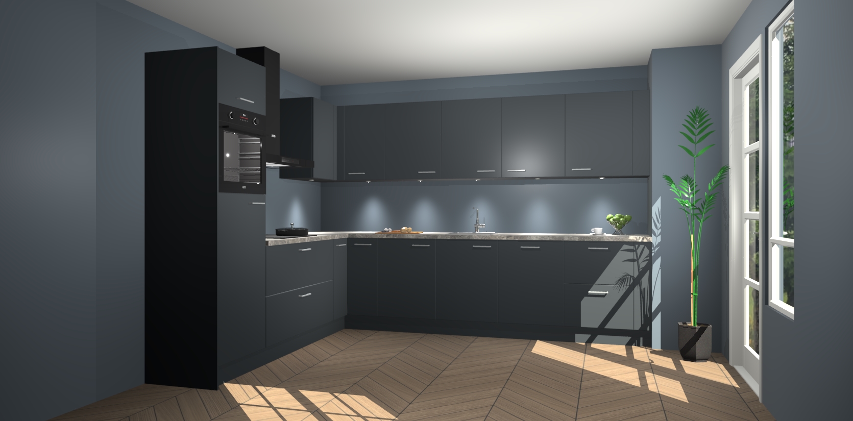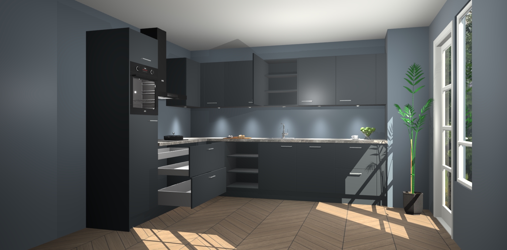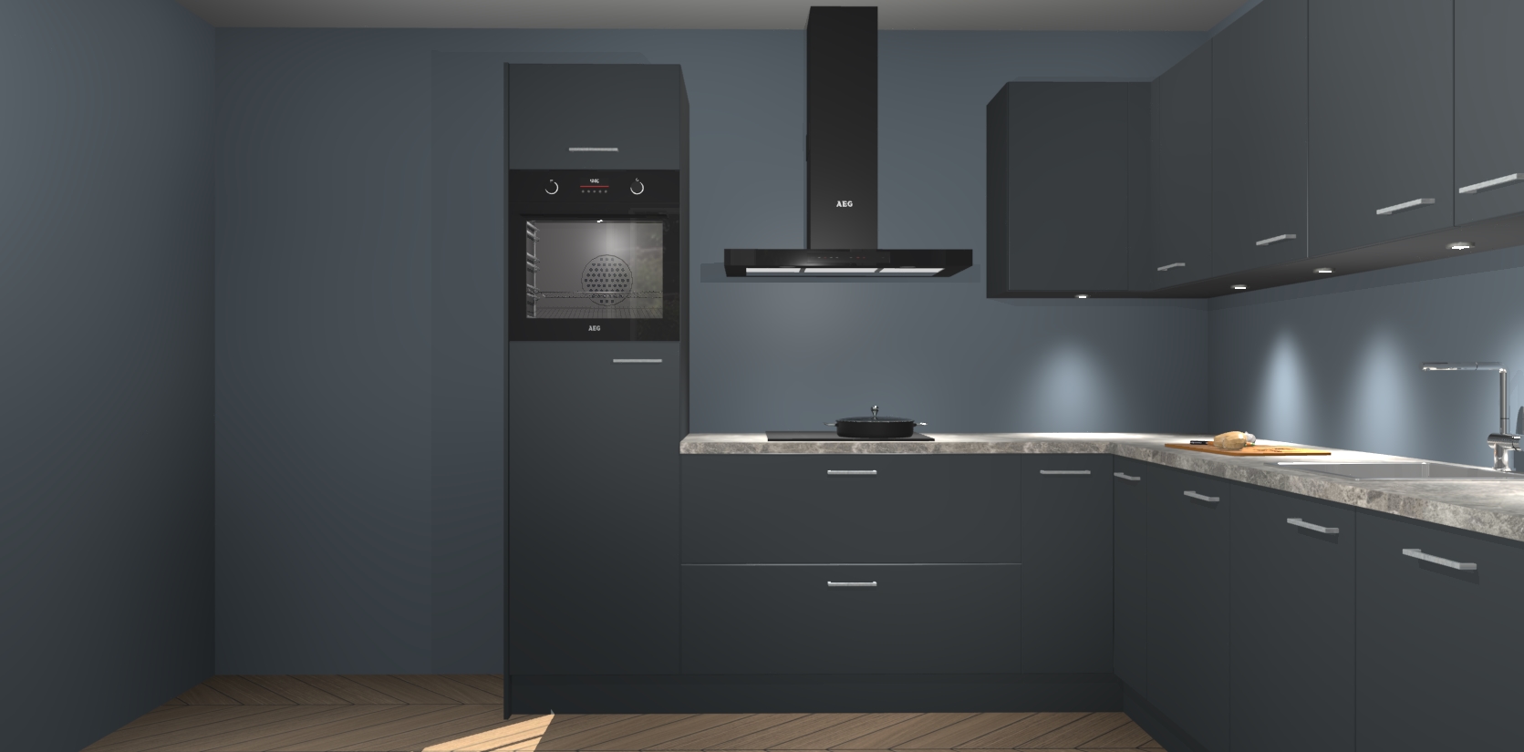 De Onyxygrijze keuken Debar is uitgerust met vijf inbouwapparaten die elke kooktaak handig en efficiënt maken. Een oven, inductiekookplaat, afzuigkap, vaatwasser en koelkast zijn standaard, maar kunnen na bestelling eenvoudig worden geupgrade naar AEG. Profiteer vervolgens van de softclose deuren voor snelle toegang en geruisloze toegang.