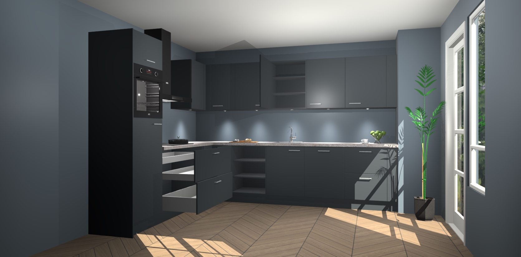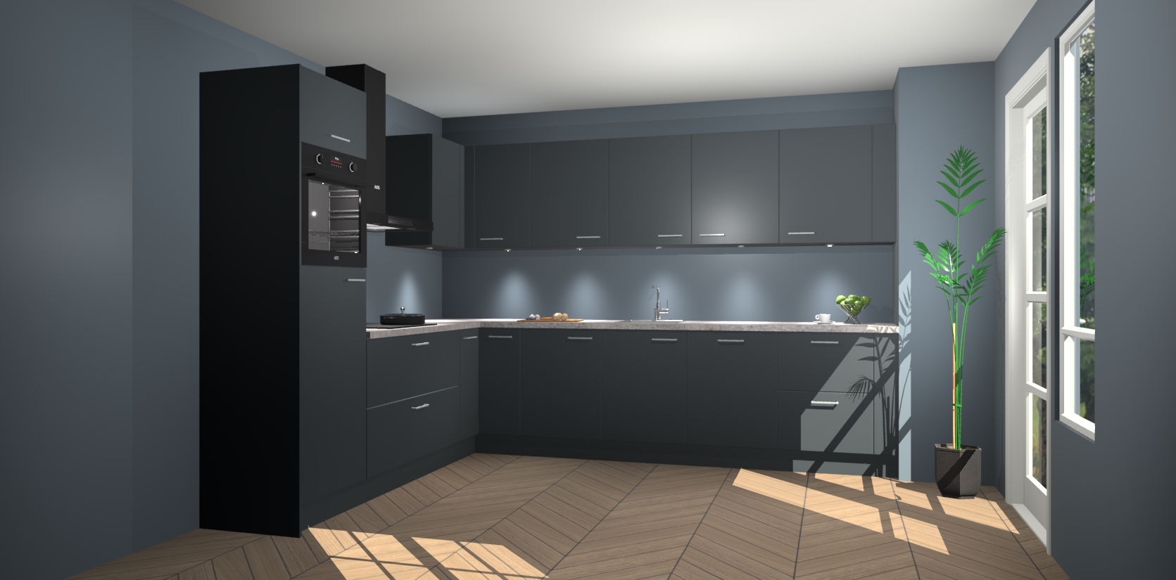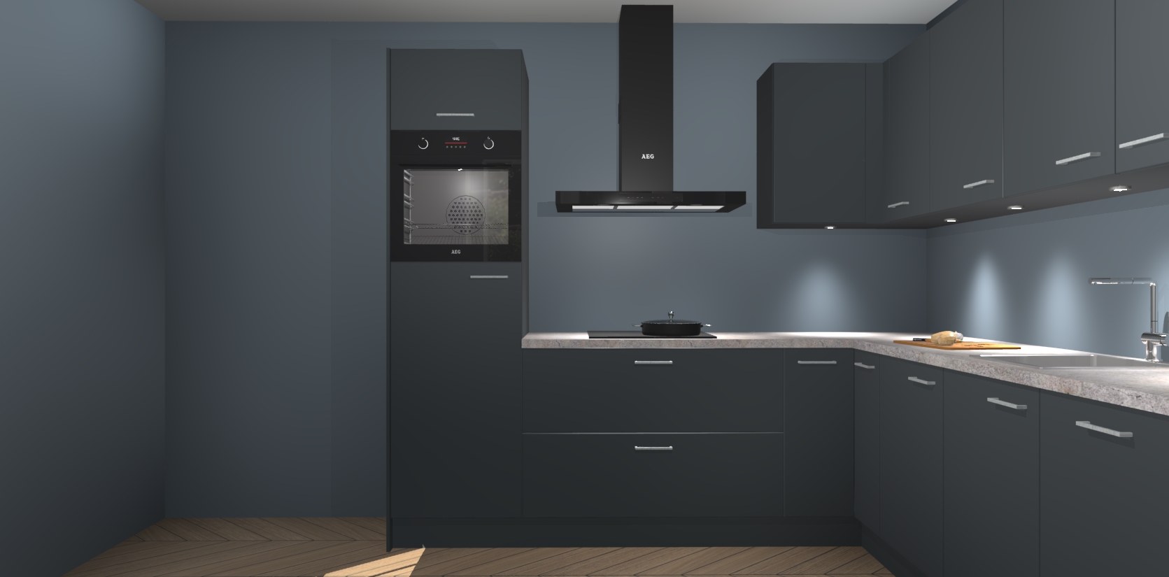 De Onyxygrijze keuken Debar is uitgerust met vijf inbouwapparaten die elke kooktaak handig en efficiënt maken. Een oven, inductiekookplaat, afzuigkap, vaatwasser en koelkast zijn standaard, maar kunnen na bestelling eenvoudig worden geupgrade naar AEG. Profiteer vervolgens van de softclose deuren voor snelle toegang en geruisloze toegang.