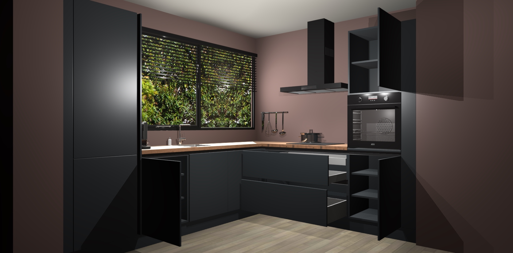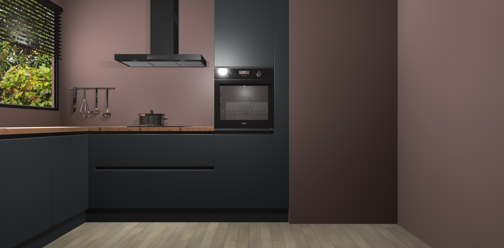 Met een modern, tijdloos design en ruime opslagruimte, zult u zich in no-time thuis voelen in uw nieuwe keuken. Uw leven wordt eenvoudiger met de soft-close deuren die voor het ultieme stille comfort zorgen - geen geluid dat u stoort terwijl u kookt. Ook is de keuken voorzien van 5 ingebouwde apparaten: een oven, inductie kookplaat, afzuigkap, vaatwasser en koelkast. Deze kunnen gemakkelijk na bestelling worden bijgewerkt naar AEG - waardoor uw luxe ervaring compleet is.