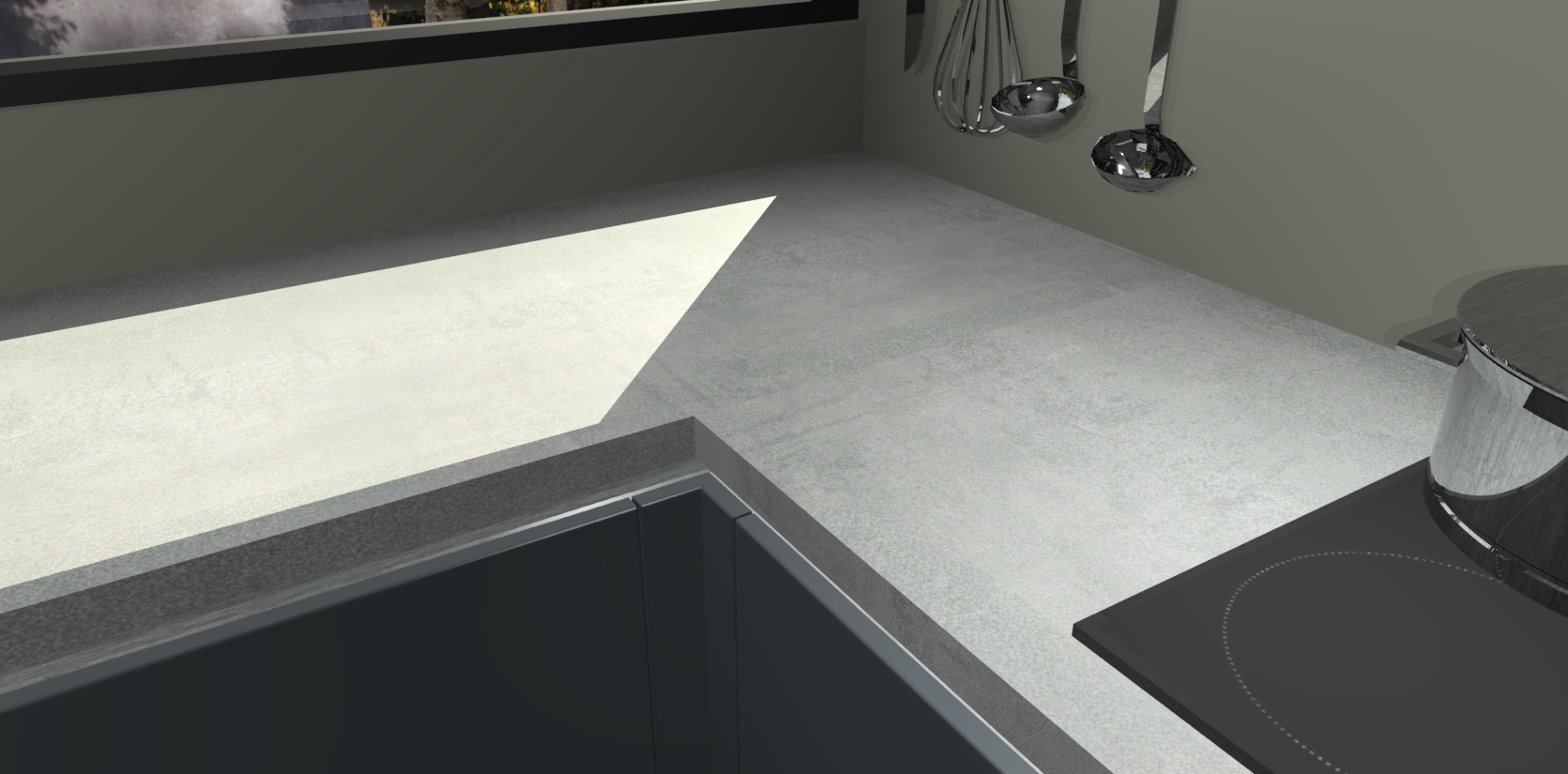 - Bij een hoekwerkblad zijn de hoeken in gevreesd en op maat gemaakt