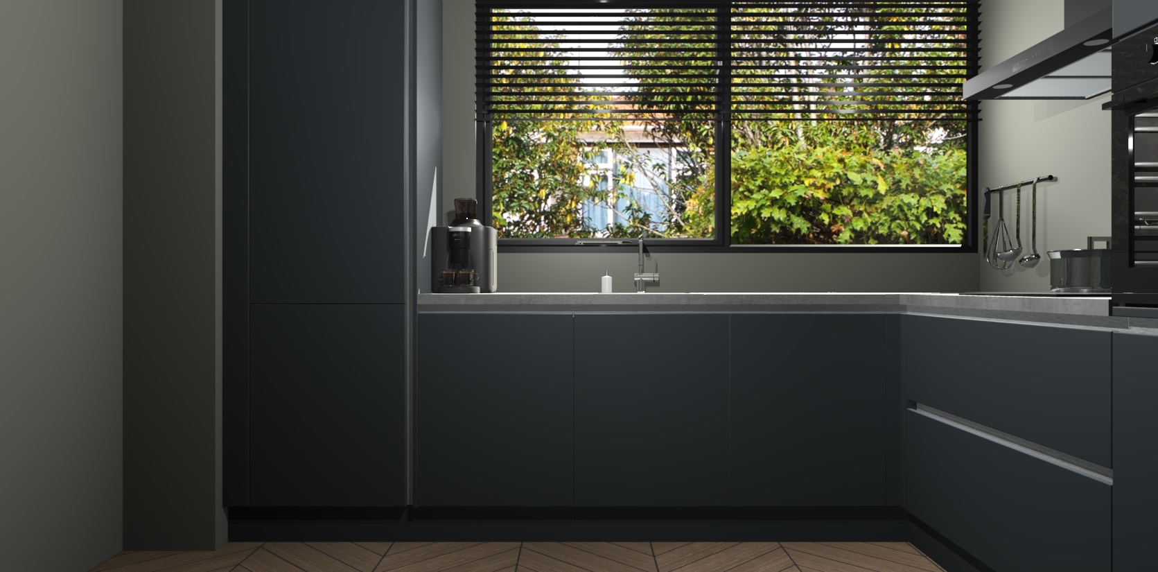 Wij presenteren de revolutie in keukens: de onyxgrijs greeploze keuken Vogar. Met modern design, een tijdloos uiterlijk en kasten die al voor gemonteerd worden geleverd, laat deze stijlvolle keuken uw kookervaring op een hele nieuwe manier transformeren.