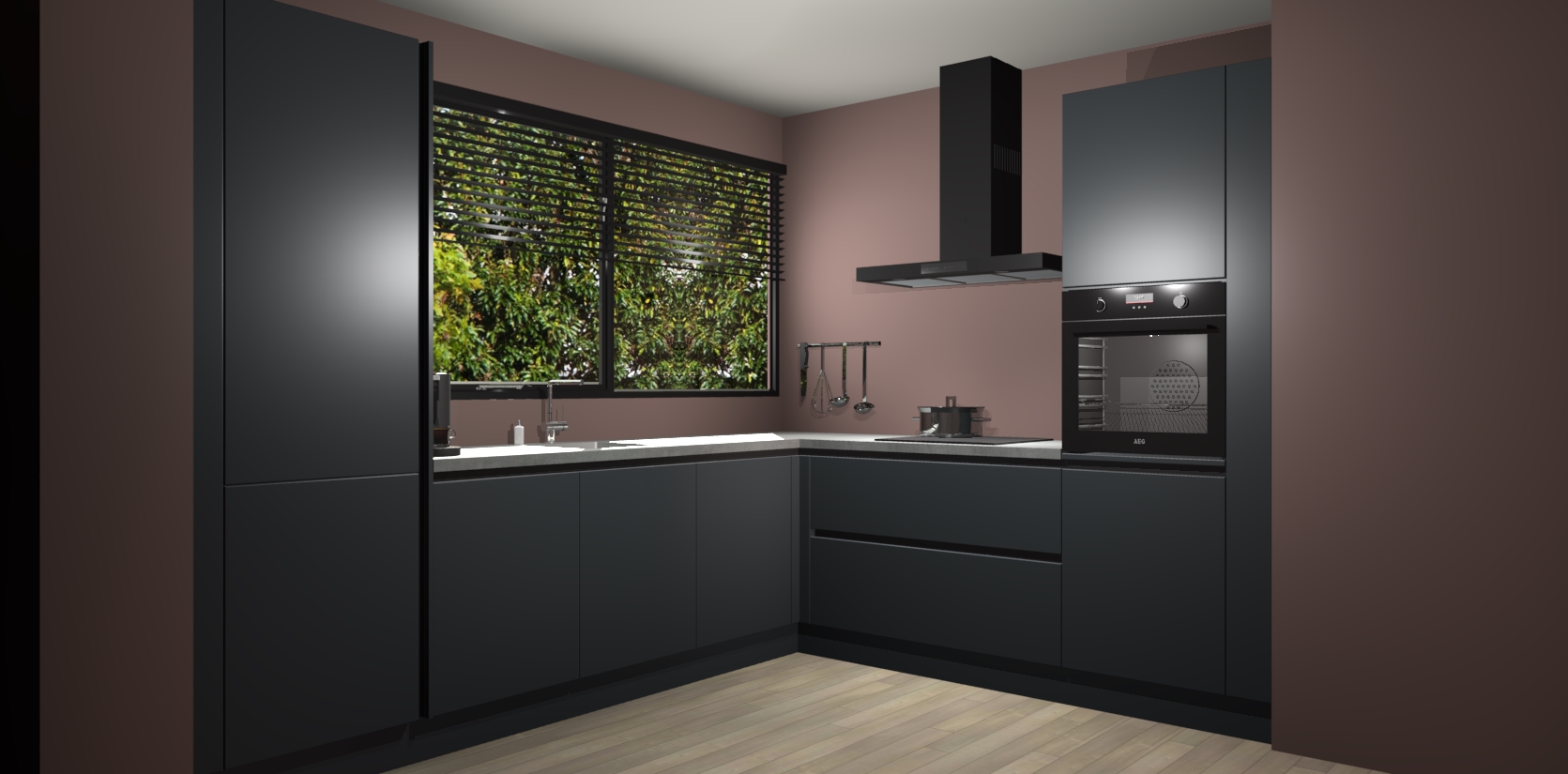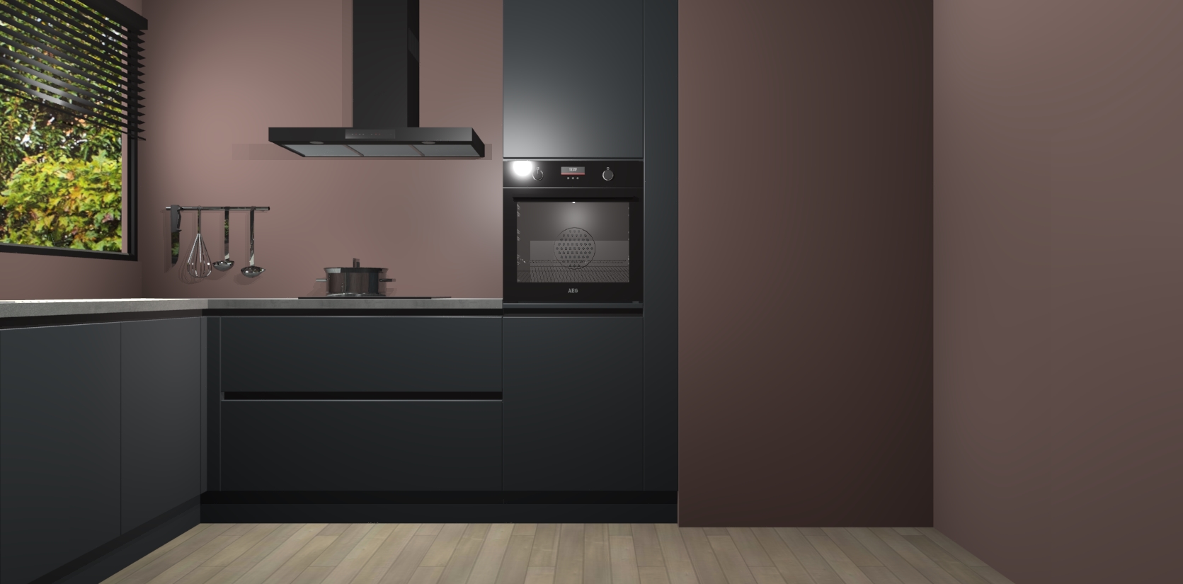 Met een modern, tijdloos design en ruime opslagruimte, zult u zich in no-time thuis voelen in uw nieuwe keuken. Uw leven wordt eenvoudiger met de soft-close deuren die voor het ultieme stille comfort zorgen - geen geluid dat u stoort terwijl u kookt. Ook is de keuken voorzien van 5 ingebouwde apparaten: een oven, inductie kookplaat, afzuigkap, vaatwasser en koelkast. Deze kunnen gemakkelijk na bestelling worden bijgewerkt naar AEG - waardoor uw luxe ervaring compleet is.