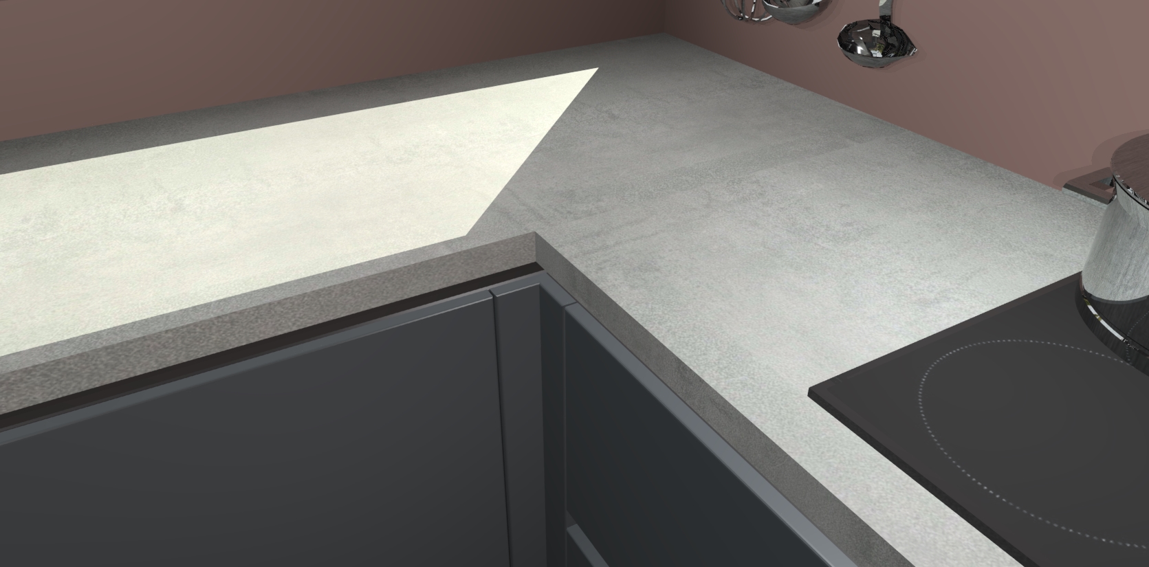 - Bij een hoekwerkblad zijn de hoeken in gevreesd en op maat gemaakt