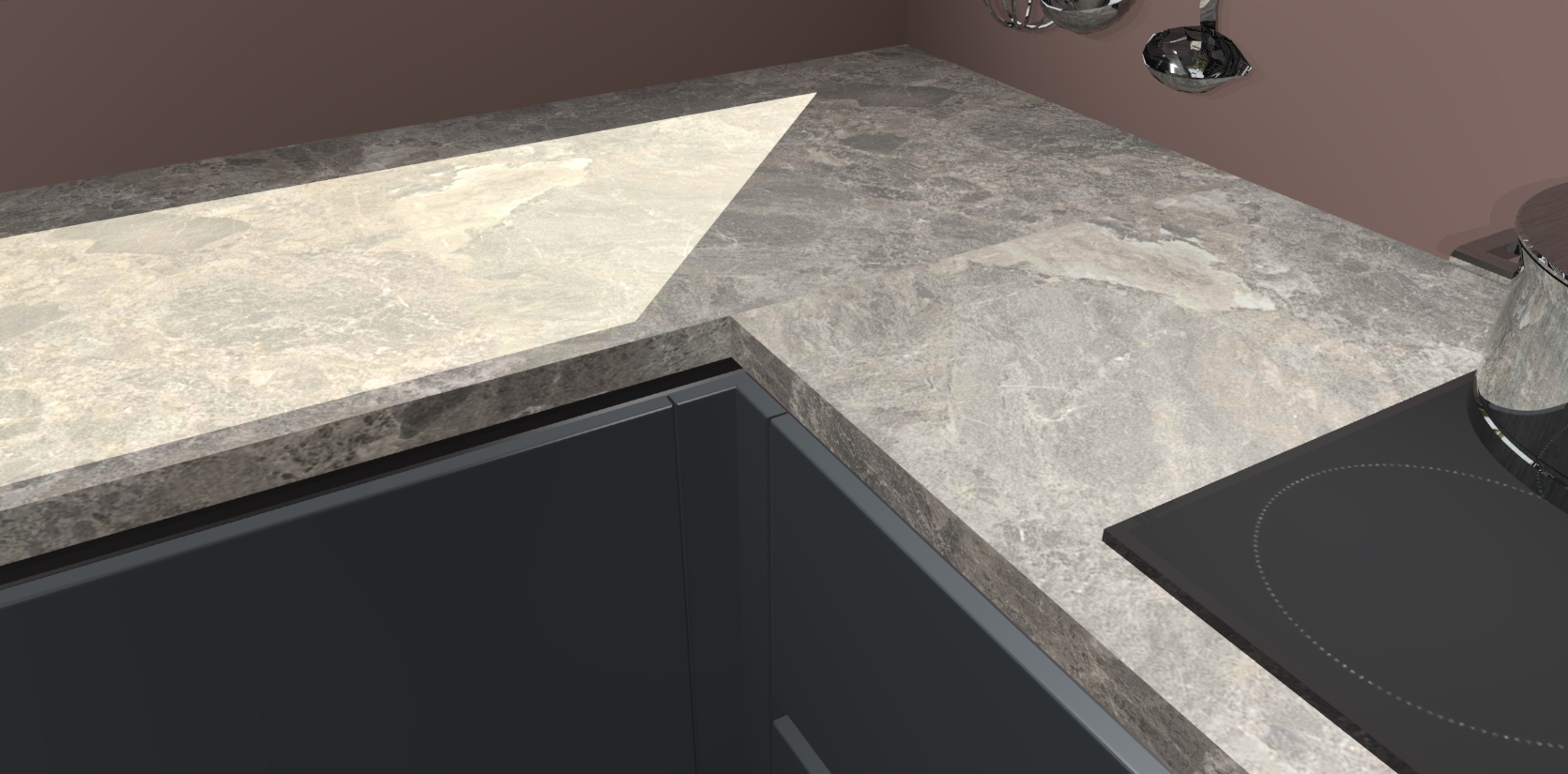 - Bij een hoekwerkblad zijn de hoeken in gevreesd en op maat gemaakt