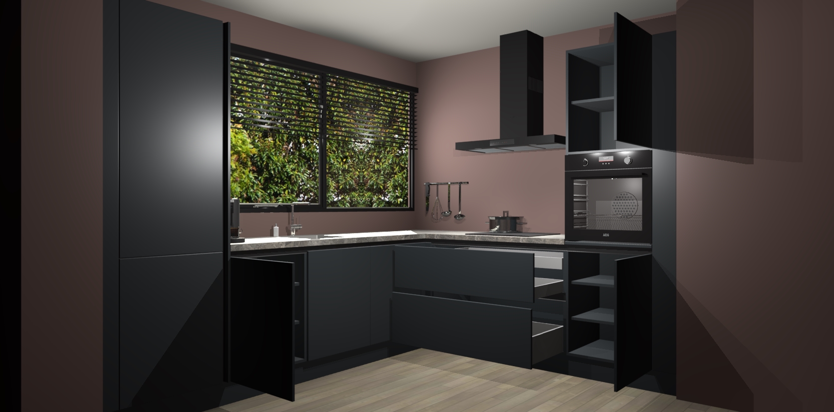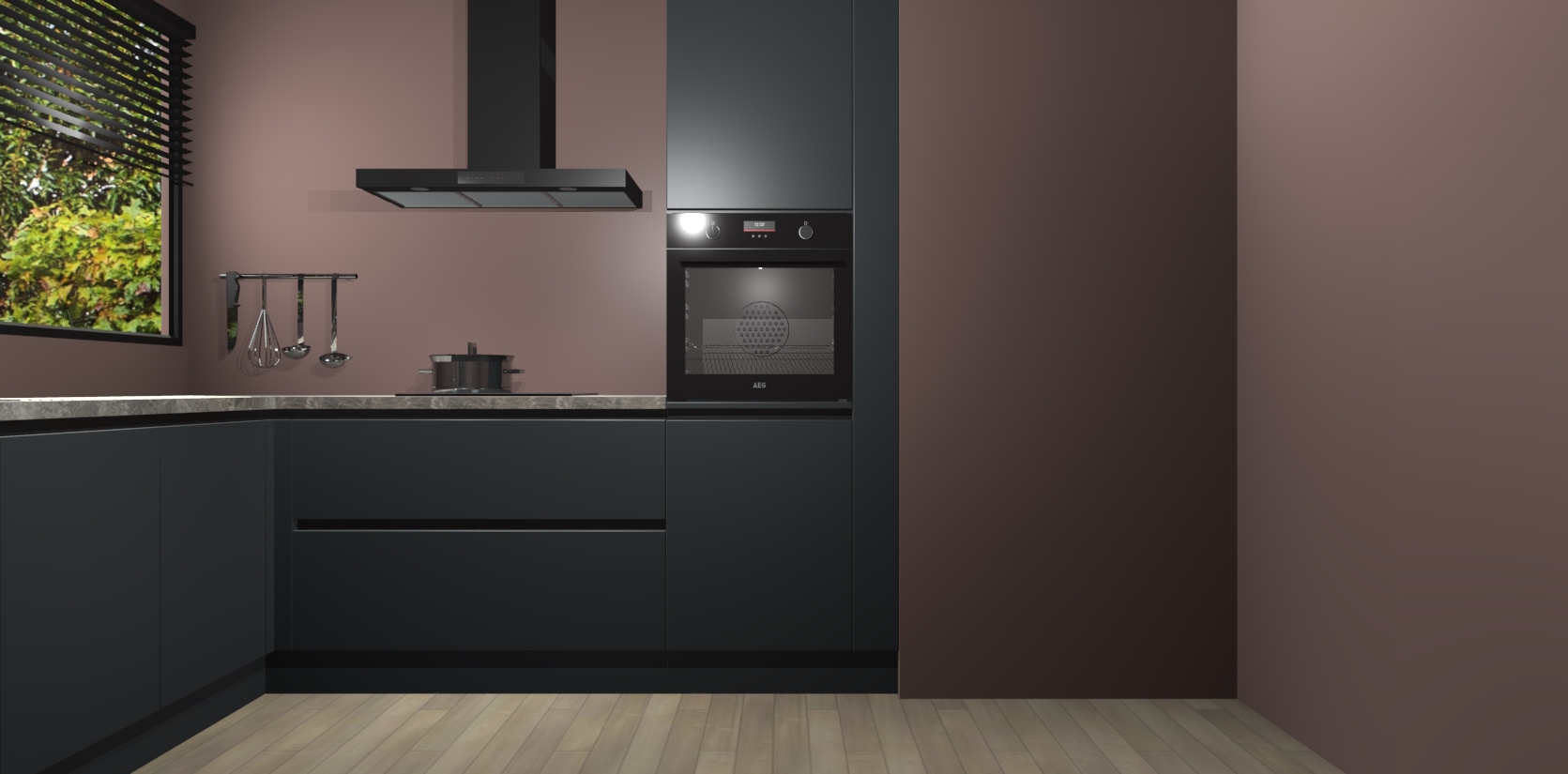 Met een modern, tijdloos design en ruime opslagruimte, zult u zich in no-time thuis voelen in uw nieuwe keuken. Uw leven wordt eenvoudiger met de soft-close deuren die voor het ultieme stille comfort zorgen - geen geluid dat u stoort terwijl u kookt. Ook is de keuken voorzien van 5 ingebouwde apparaten: een oven, inductie kookplaat, afzuigkap, vaatwasser en koelkast. Deze kunnen gemakkelijk na bestelling worden bijgewerkt naar AEG - waardoor uw luxe ervaring compleet is.