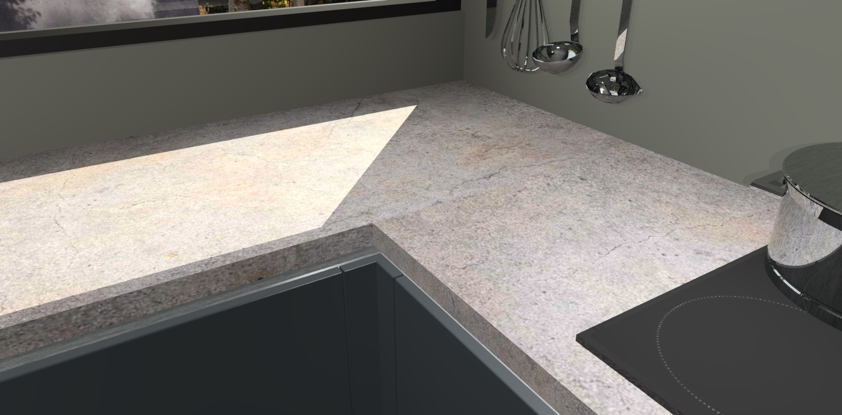 - Bij een hoekwerkblad zijn de hoeken in gevreesd en op maat gemaakt