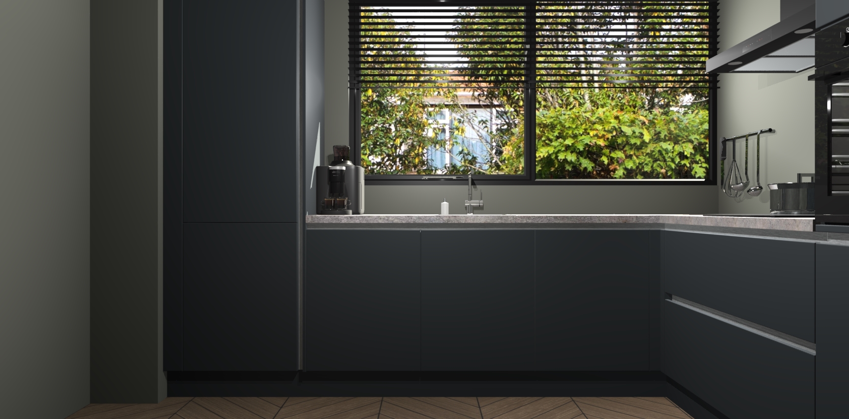 Wij presenteren de revolutie in keukens: de onyxgrijs greeploze keuken Vogar. Met modern design, een tijdloos uiterlijk en kasten die al voor gemonteerd worden geleverd, laat deze stijlvolle keuken uw kookervaring op een hele nieuwe manier transformeren.
