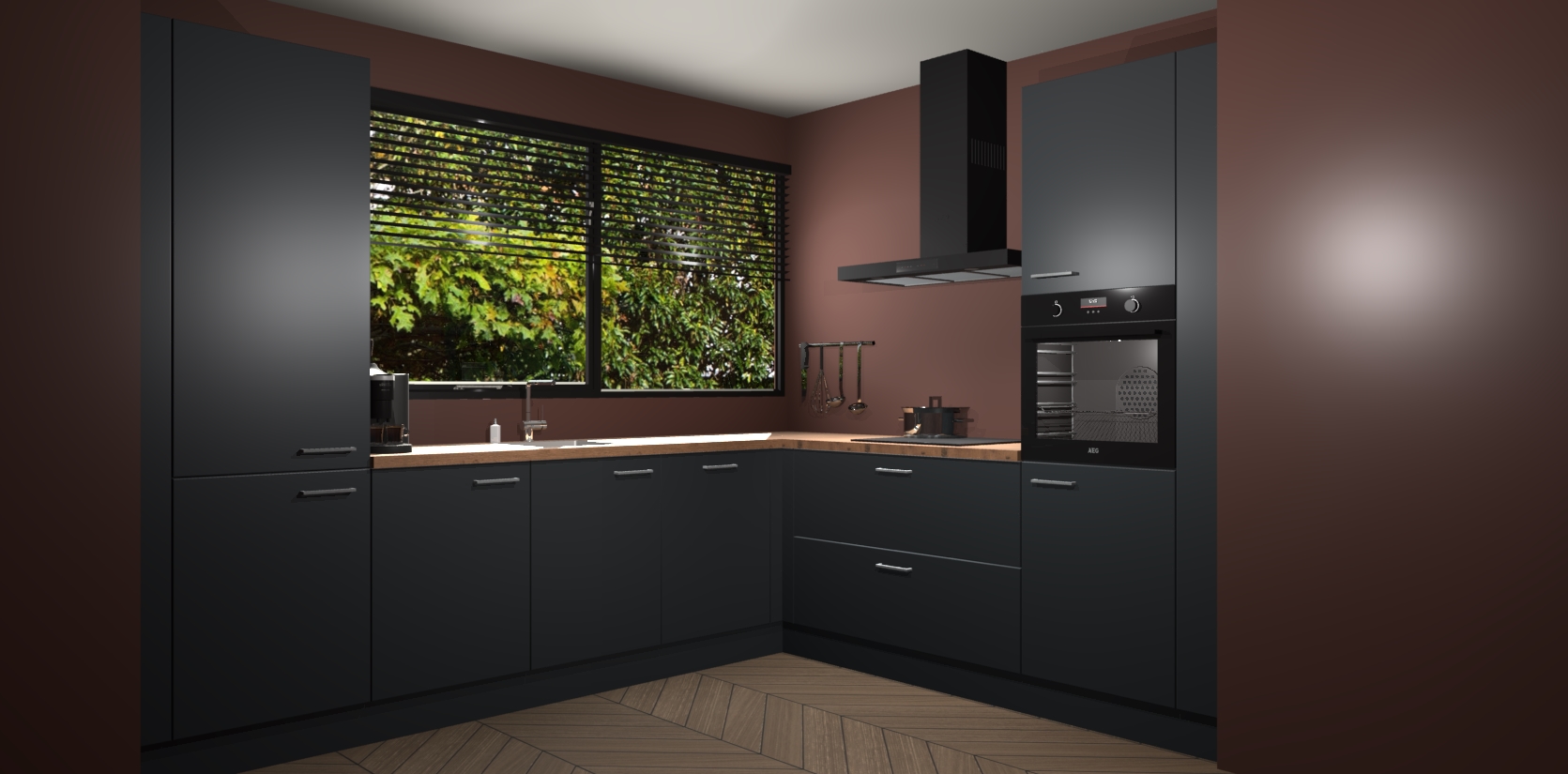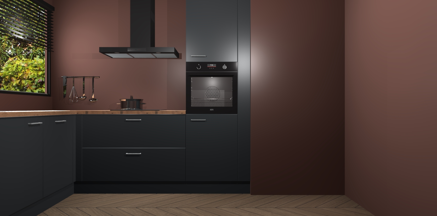 Met een modern, tijdloos design en ruime opslagruimte, zult u zich in no-time thuis voelen in uw nieuwe keuken. Uw leven wordt eenvoudiger met de soft-close deuren die voor het ultieme stille comfort zorgen - geen geluid dat u stoort terwijl u kookt. Ook is de keuken voorzien van 5 ingebouwde apparaten: een oven, inductie kookplaat, afzuigkap, vaatwasser en koelkast. Deze kunnen gemakkelijk na bestelling worden bijgewerkt naar AEG - waardoor uw luxe ervaring compleet is.