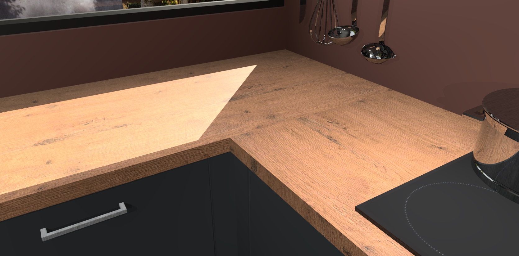 - Bij een hoekwerkblad zijn de hoeken in gevreesd en op maat gemaakt