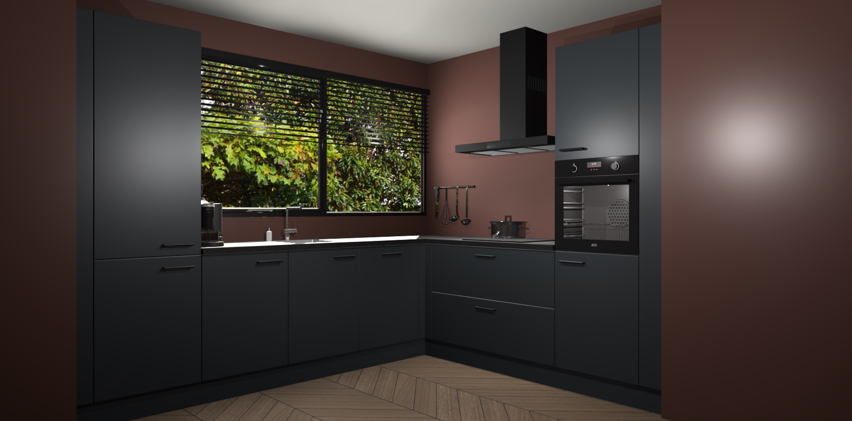 Met een modern, tijdloos design en ruime opslagruimte, zult u zich in no-time thuis voelen in uw nieuwe keuken. Uw leven wordt eenvoudiger met de soft-close deuren die voor het ultieme stille comfort zorgen - geen geluid dat u stoort terwijl u kookt. Ook is de keuken voorzien van 5 ingebouwde apparaten: een oven, inductie kookplaat, afzuigkap, vaatwasser en koelkast. Deze kunnen gemakkelijk na bestelling worden bijgewerkt naar AEG - waardoor uw luxe ervaring compleet is.