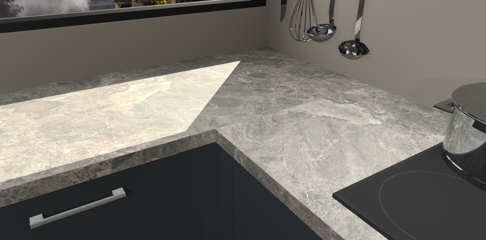 - Bij een hoekwerkblad zijn de hoeken in gevreesd en op maat gemaakt