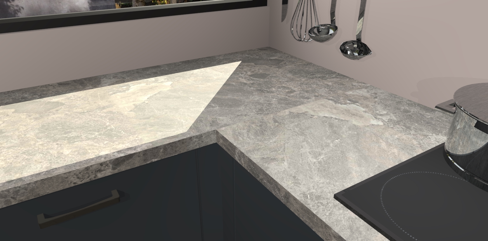 - Bij een hoekwerkblad zijn de hoeken in gevreesd en op maat gemaakt