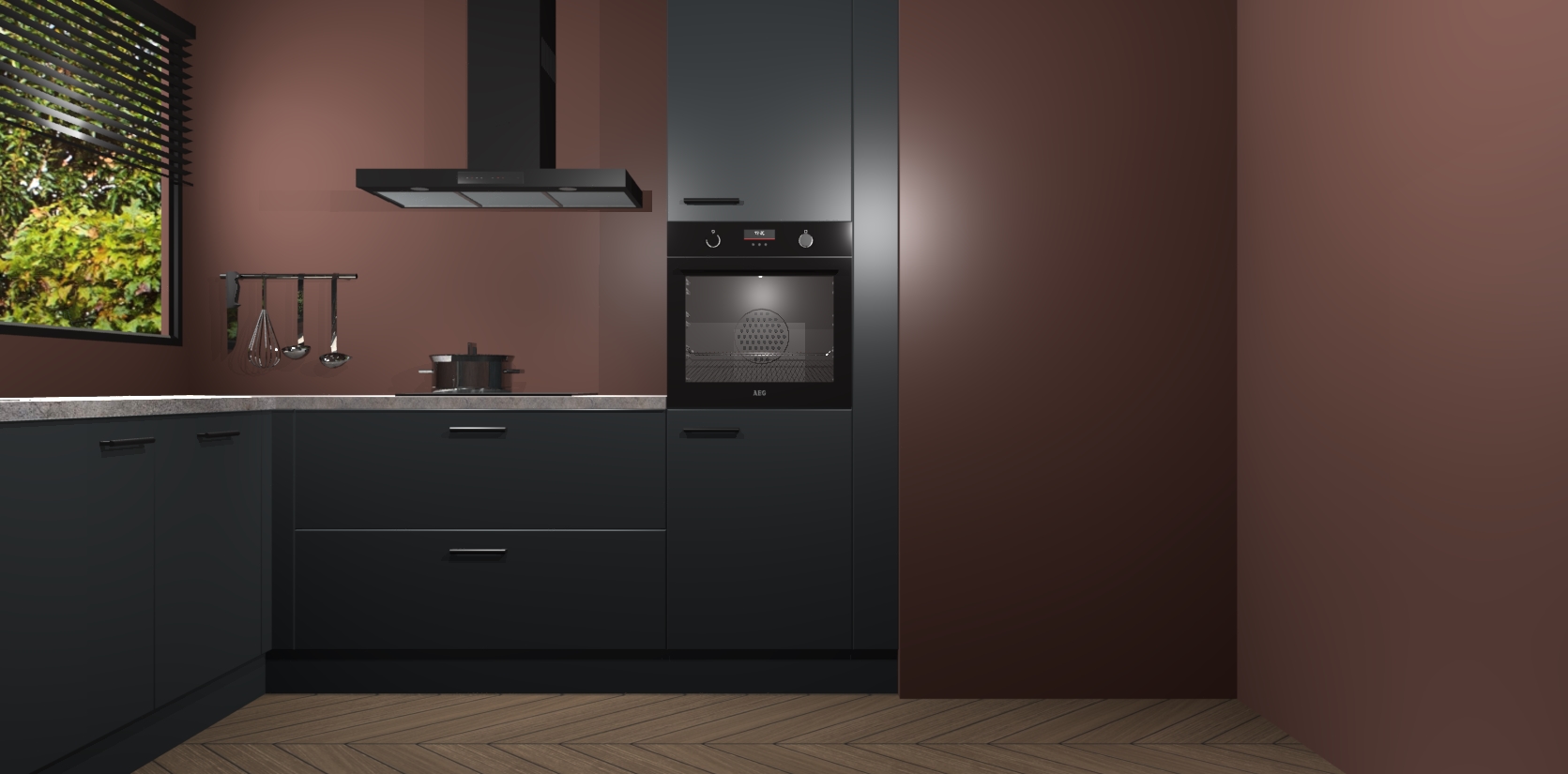 Met een modern, tijdloos design en ruime opslagruimte, zult u zich in no-time thuis voelen in uw nieuwe keuken. Uw leven wordt eenvoudiger met de soft-close deuren die voor het ultieme stille comfort zorgen - geen geluid dat u stoort terwijl u kookt. Ook is de keuken voorzien van 5 ingebouwde apparaten: een oven, inductie kookplaat, afzuigkap, vaatwasser en koelkast. Deze kunnen gemakkelijk na bestelling worden bijgewerkt naar AEG - waardoor uw luxe ervaring compleet is.
