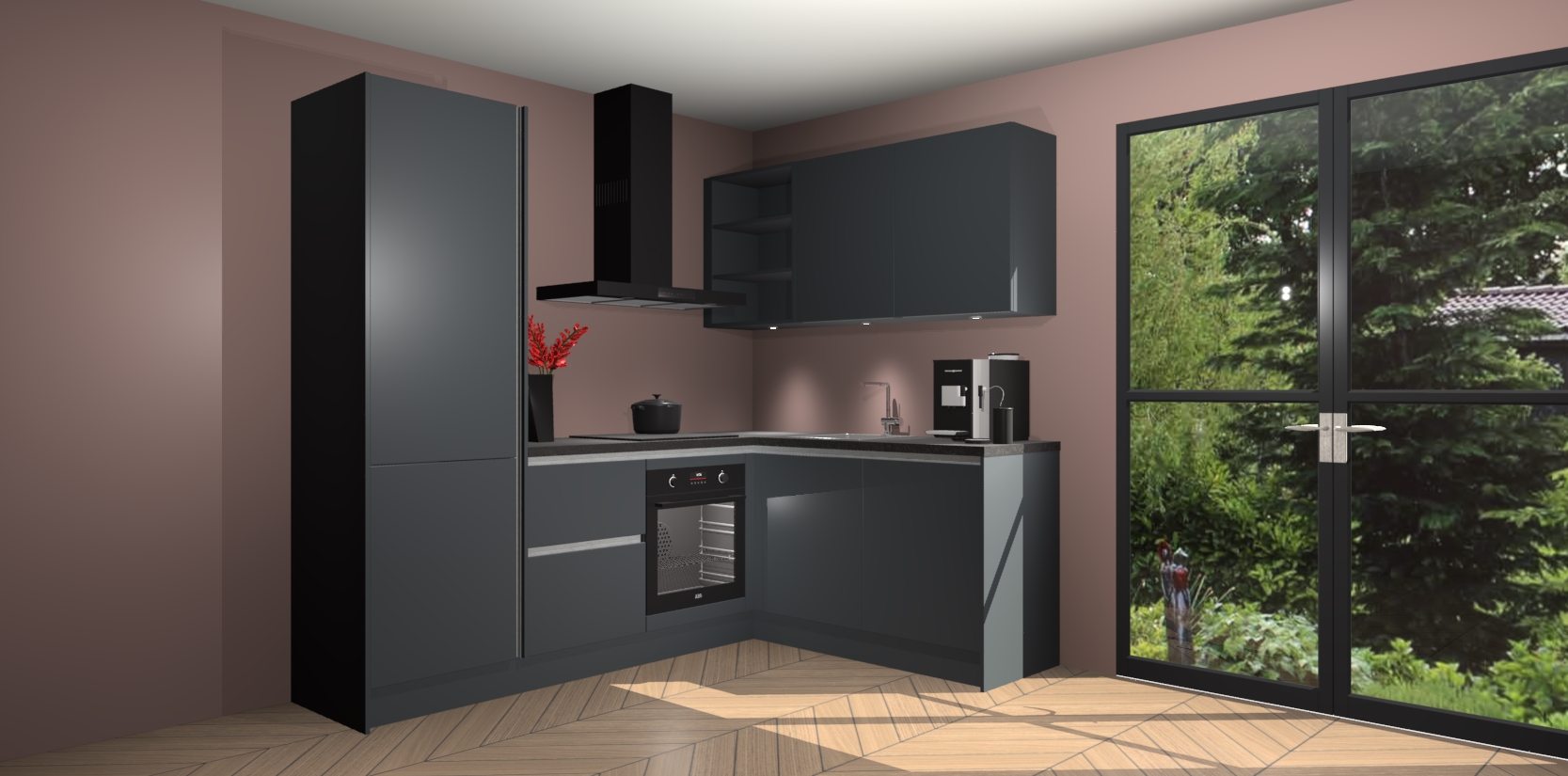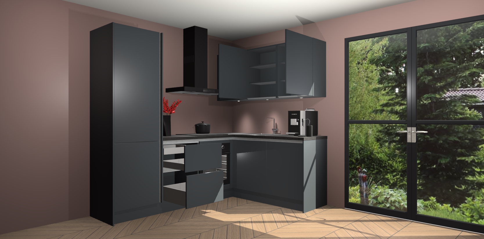 Wauw, dit is de onyxgrijze greeploze keuken Pilsen! U kunt gerust zeggen dat u elegantie combineert met functionaliteit met deze keuken. Met een modern en chique ontwerp is de keuken precies wat u nodig heeft om uw ruimte te verfraaien. De binnenzijde van de kasten is in dezelfde donkere kleur als de buitenzijde voor een uniforme look, compleet met softclose-kasten die stil sluiten.