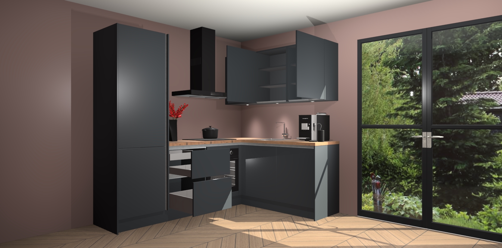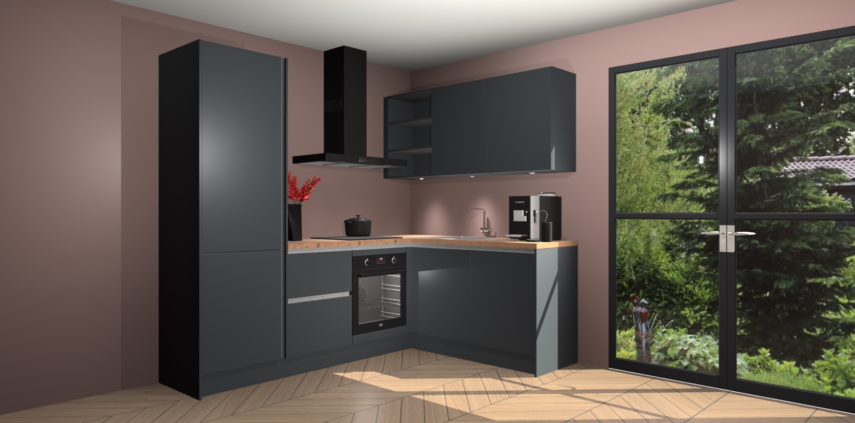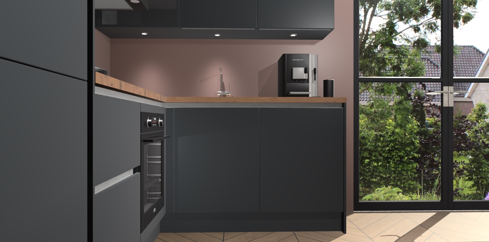 Wauw, dit is de onyxgrijze greeploze keuken Pilsen! U kunt gerust zeggen dat u elegantie combineert met functionaliteit met deze keuken. Met een modern en chique ontwerp is de keuken precies wat u nodig heeft om uw ruimte te verfraaien. De binnenzijde van de kasten is in dezelfde donkere kleur als de buitenzijde voor een uniforme look, compleet met softclose-kasten die stil sluiten.