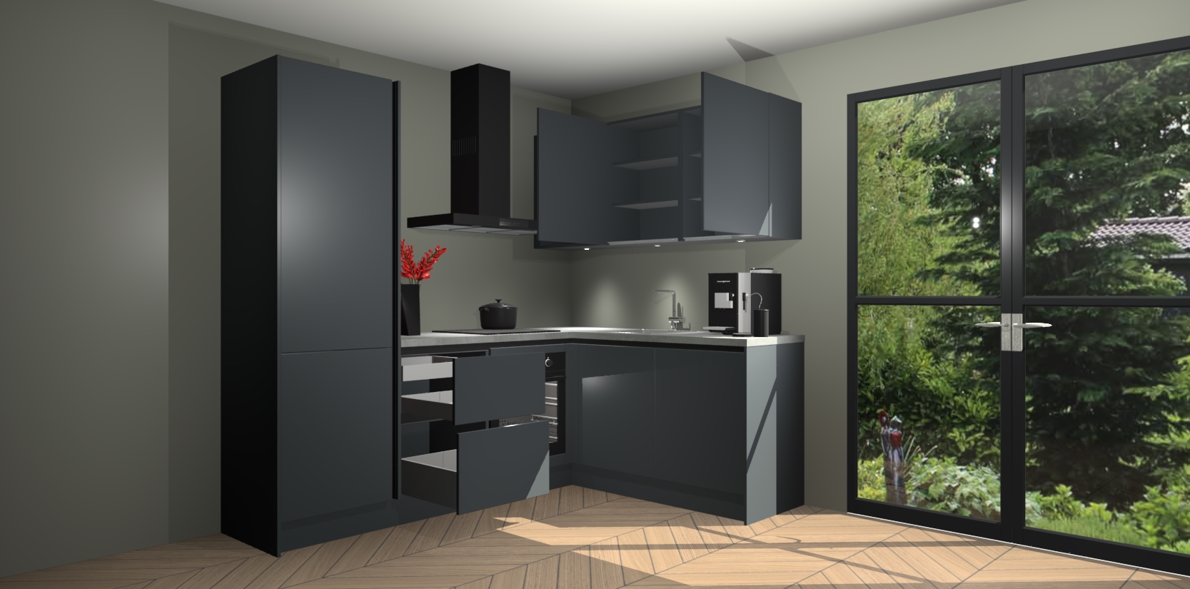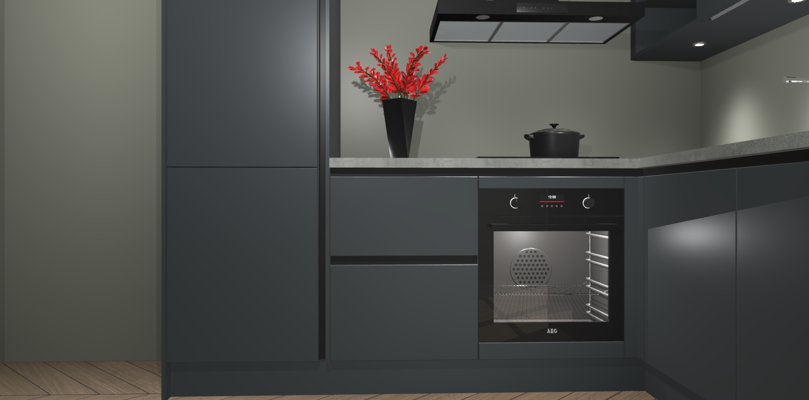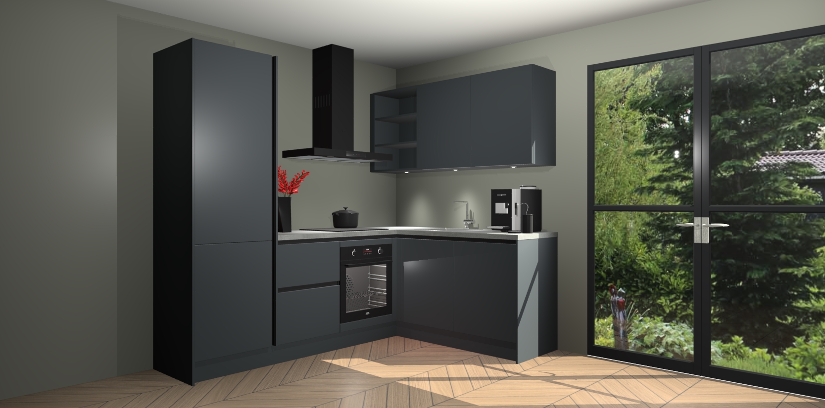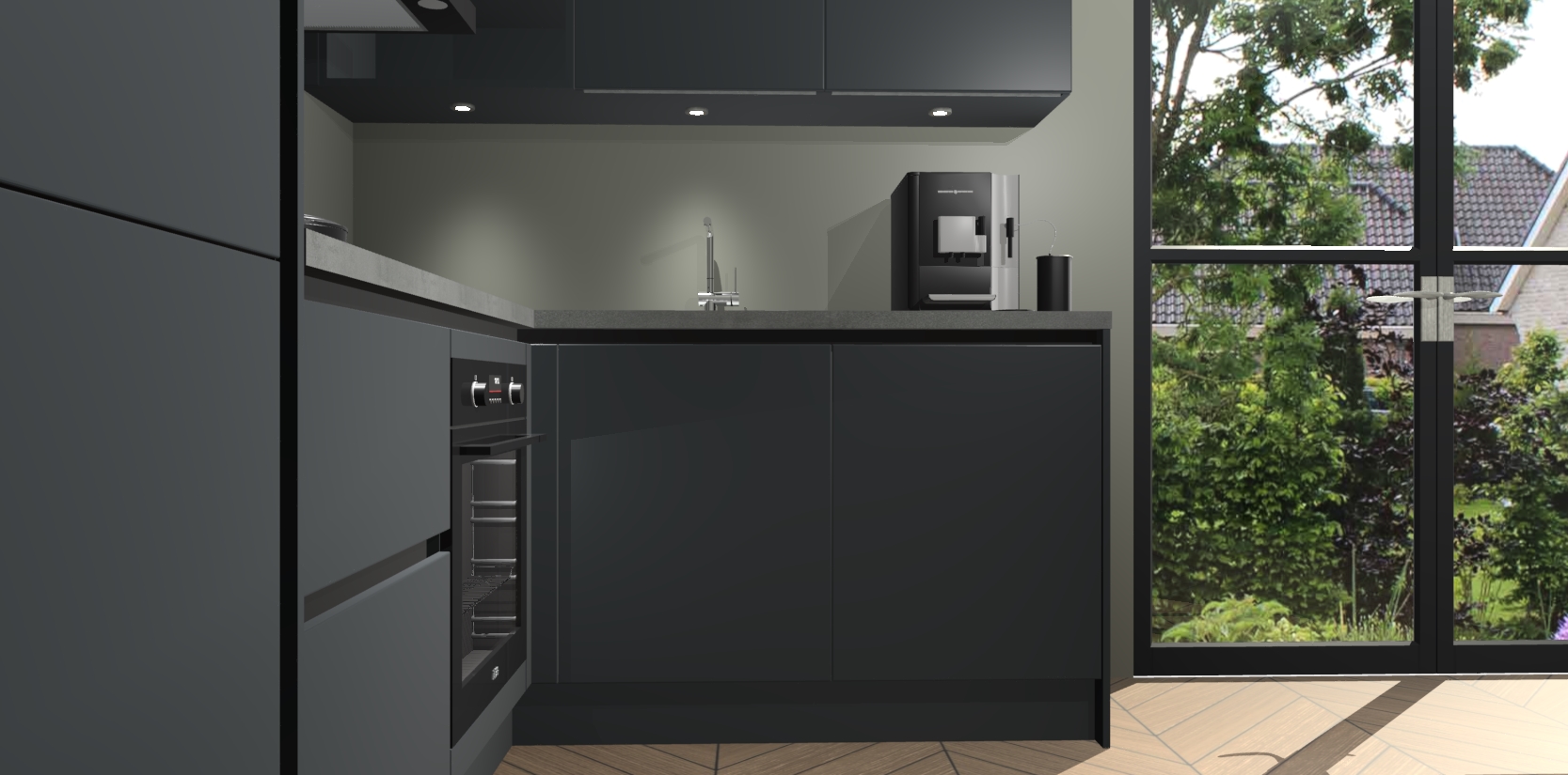Wauw, dit is de onyxgrijze greeploze keuken Pilsen! U kunt gerust zeggen dat u elegantie combineert met functionaliteit met deze keuken. Met een modern en chique ontwerp is de keuken precies wat u nodig heeft om uw ruimte te verfraaien. De binnenzijde van de kasten is in dezelfde donkere kleur als de buitenzijde voor een uniforme look, compleet met softclose-kasten die stil sluiten.