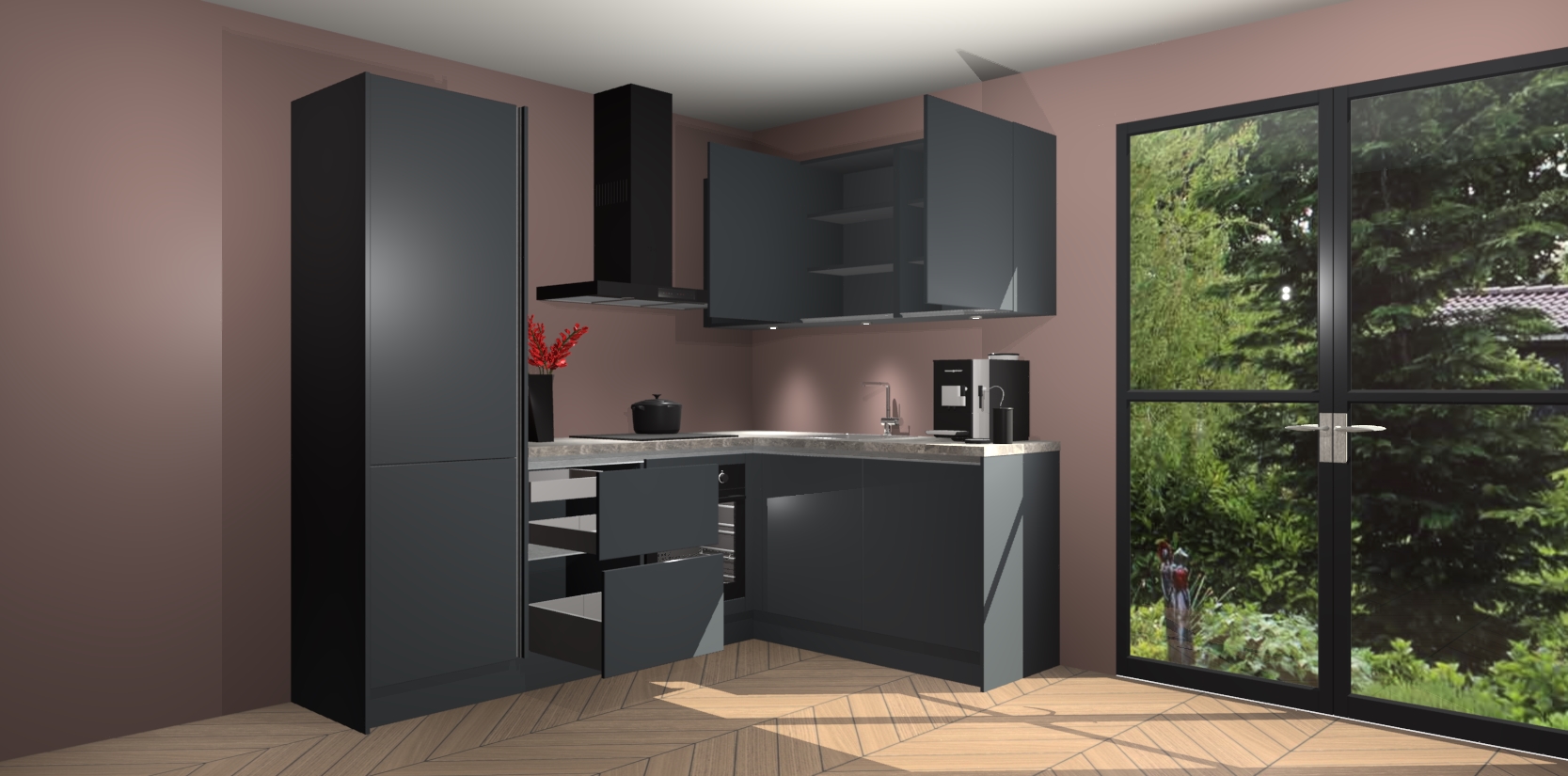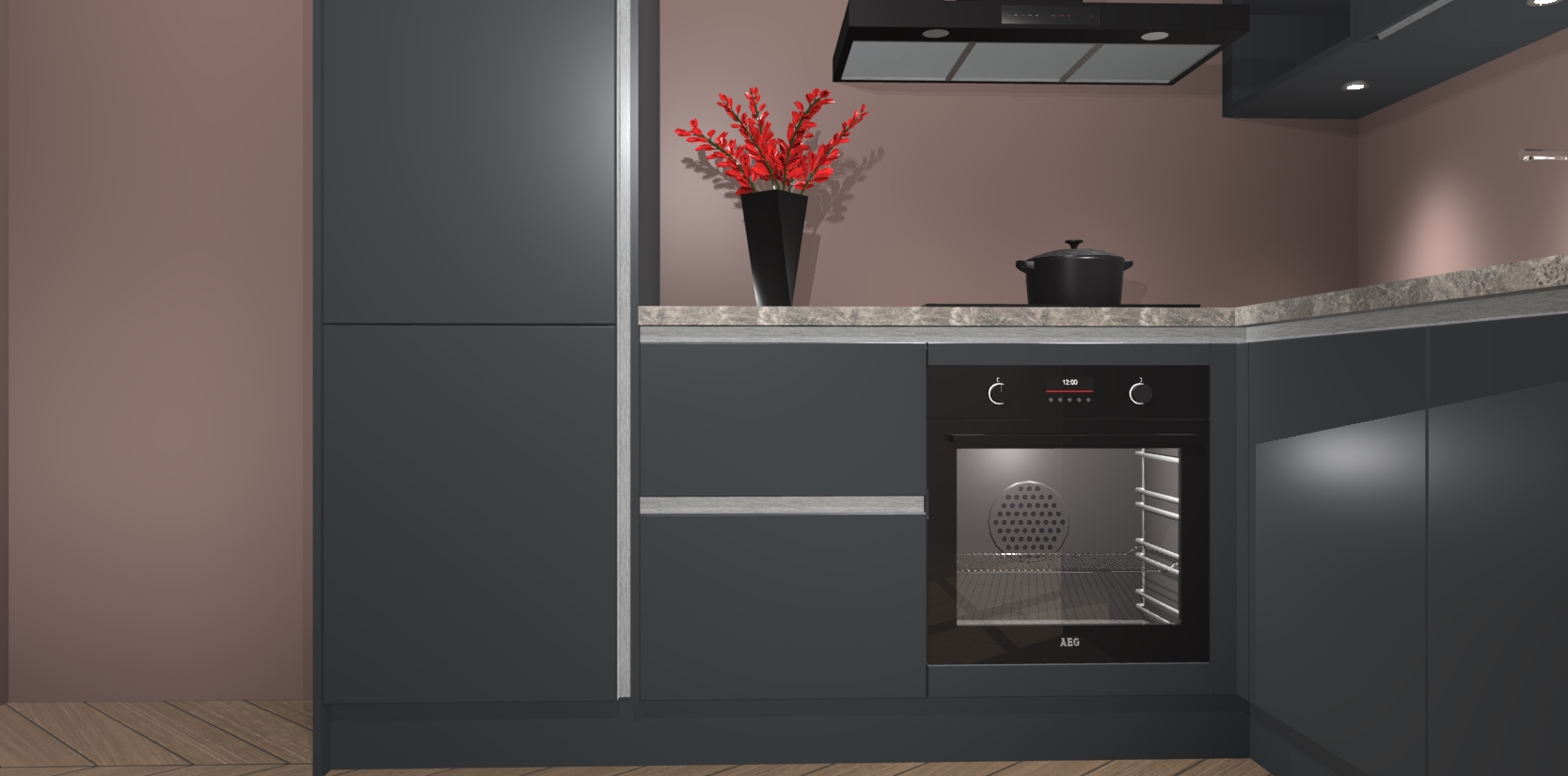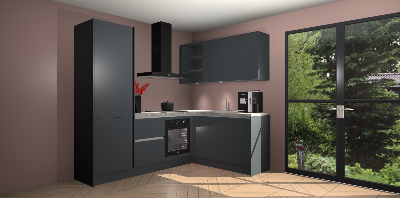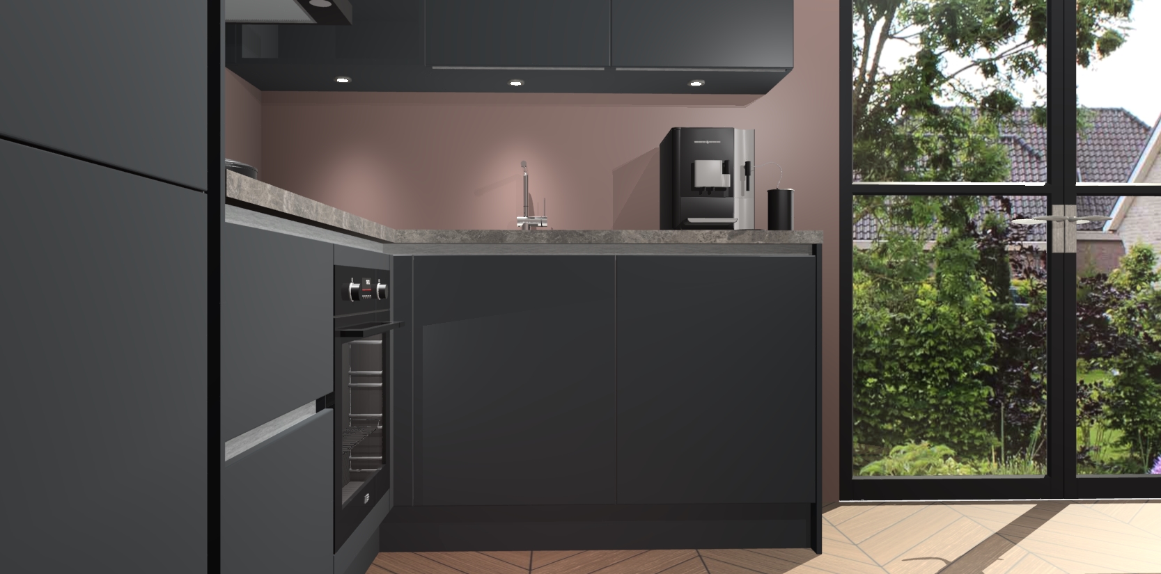 Wauw, dit is de onyxgrijze greeploze keuken Pilsen! U kunt gerust zeggen dat u elegantie combineert met functionaliteit met deze keuken. Met een modern en chique ontwerp is de keuken precies wat u nodig heeft om uw ruimte te verfraaien. De binnenzijde van de kasten is in dezelfde donkere kleur als de buitenzijde voor een uniforme look, compleet met softclose-kasten die stil sluiten.