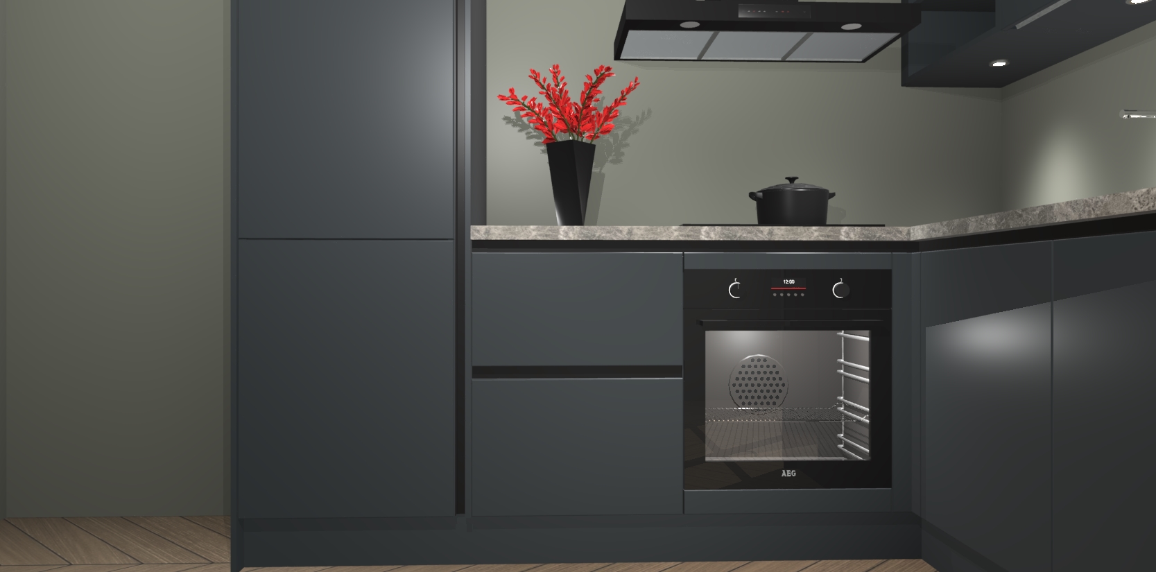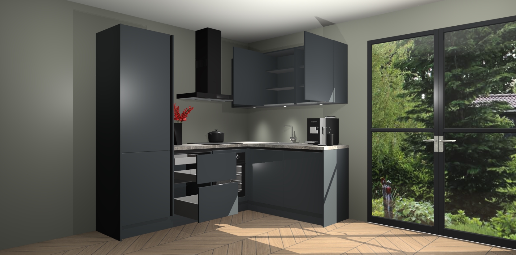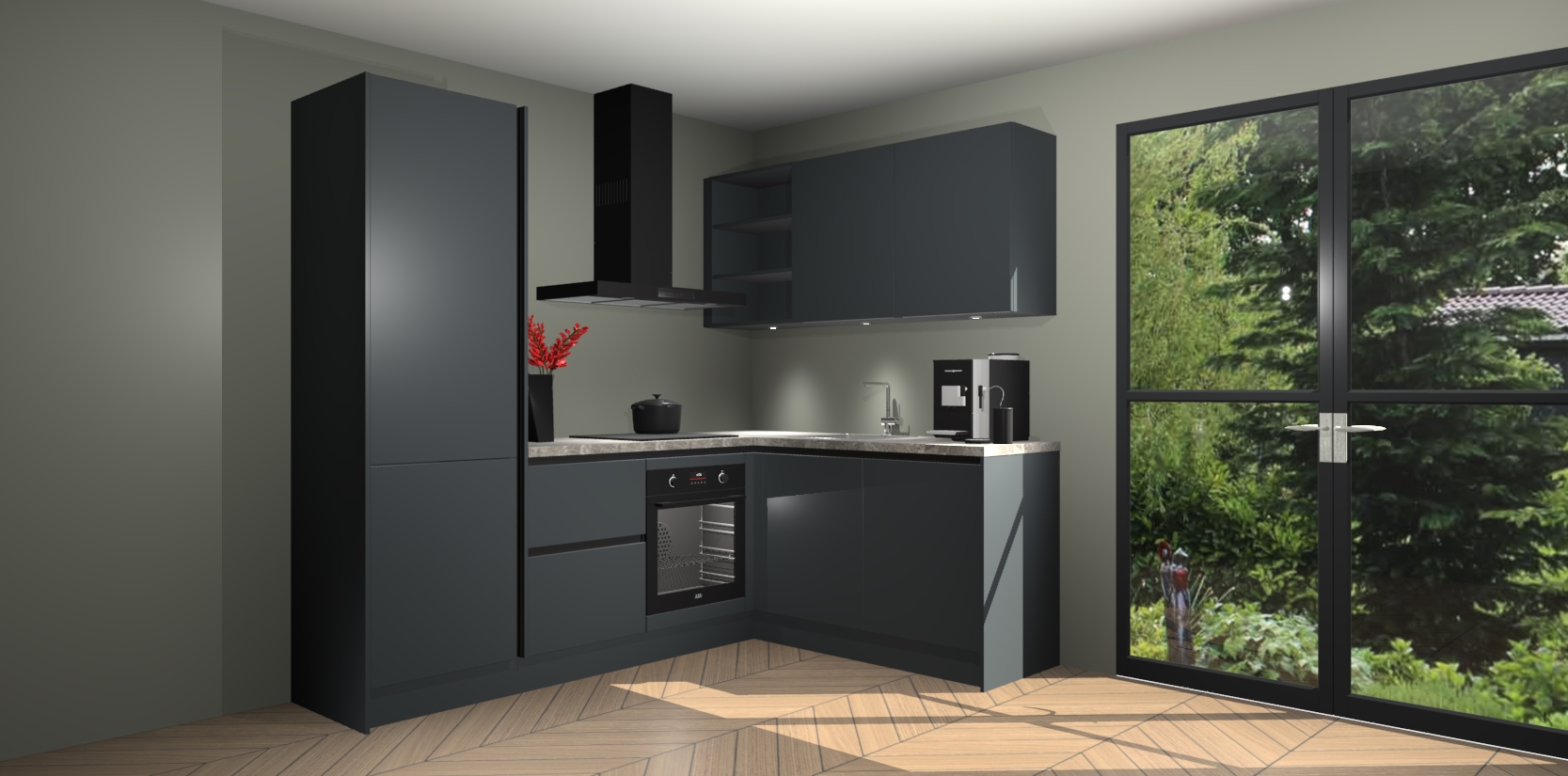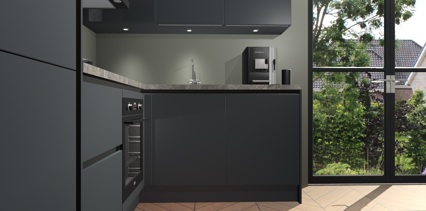 Wauw, dit is de onyxgrijze greeploze keuken Pilsen! U kunt gerust zeggen dat u elegantie combineert met functionaliteit met deze keuken. Met een modern en chique ontwerp is de keuken precies wat u nodig heeft om uw ruimte te verfraaien. De binnenzijde van de kasten is in dezelfde donkere kleur als de buitenzijde voor een uniforme look, compleet met softclose-kasten die stil sluiten.