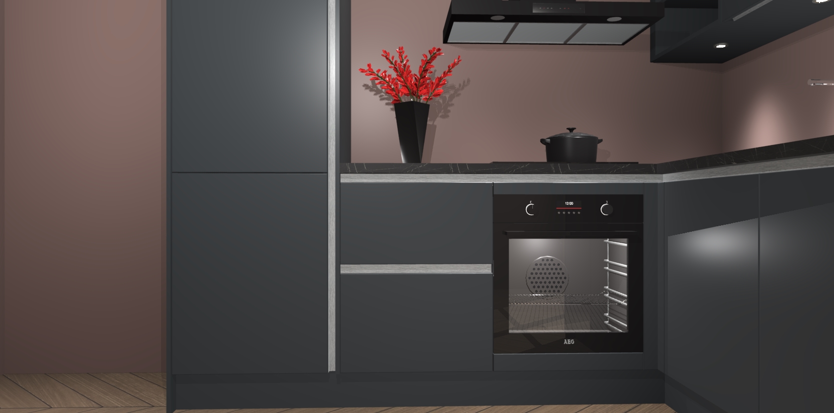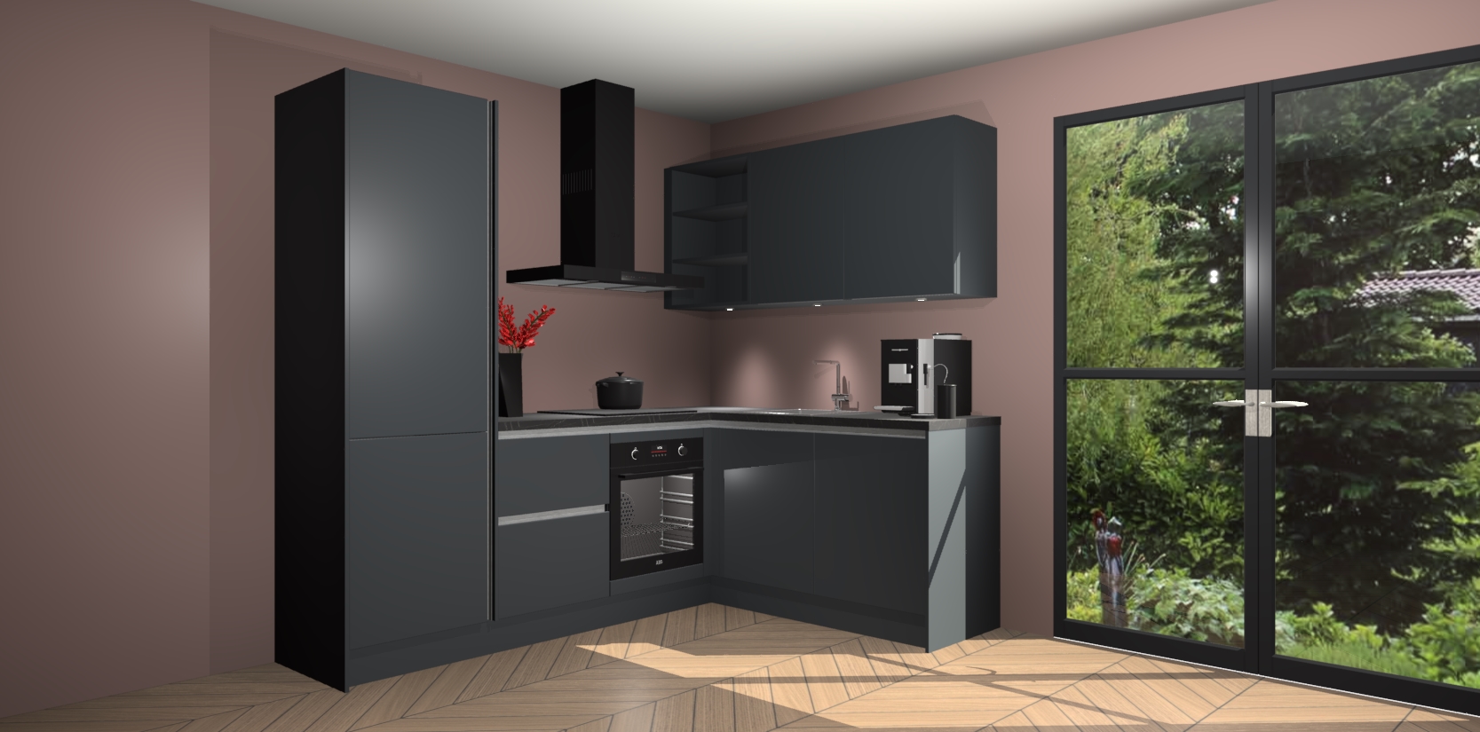 Wauw, dit is de onyxgrijze greeploze keuken Pilsen! U kunt gerust zeggen dat u elegantie combineert met functionaliteit met deze keuken. Met een modern en chique ontwerp is de keuken precies wat u nodig heeft om uw ruimte te verfraaien. De binnenzijde van de kasten is in dezelfde donkere kleur als de buitenzijde voor een uniforme look, compleet met softclose-kasten die stil sluiten.