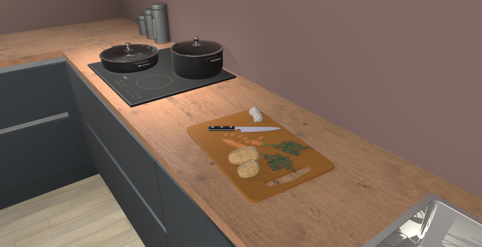 Inclusief plinten, stelpoten en werkblad