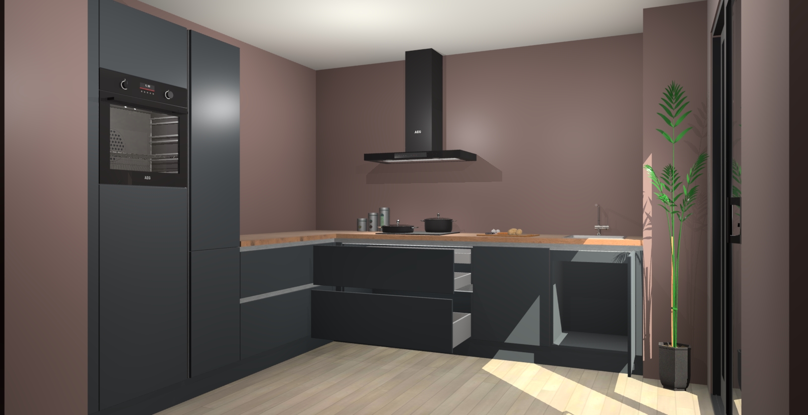 Laat u verrassen door de nieuwste en meest innovatieve keuken van dit moment: De Onyxgrijze greeploze keuken Antibes. Deze chique keuken straalt een stijlvolle sfeer uit die zeker bewondering zal oogsten bij uw gasten. Als u op zoek bent naar voldoende opbergruimte voor al uw keukengadgets en -gerei, dan is dit de perfecte oplossing. Met ingebouwde apparatuur zoals een oven, inductiekookplaat, afzuigkap, vaatwasser en koelkast! U krijgt niet alleen veel opbergruimte, maar ook een betrouwbaar soft close-deursysteem dat ervoor zorgt dat er nooit meer kastdeuren dichtslaan!