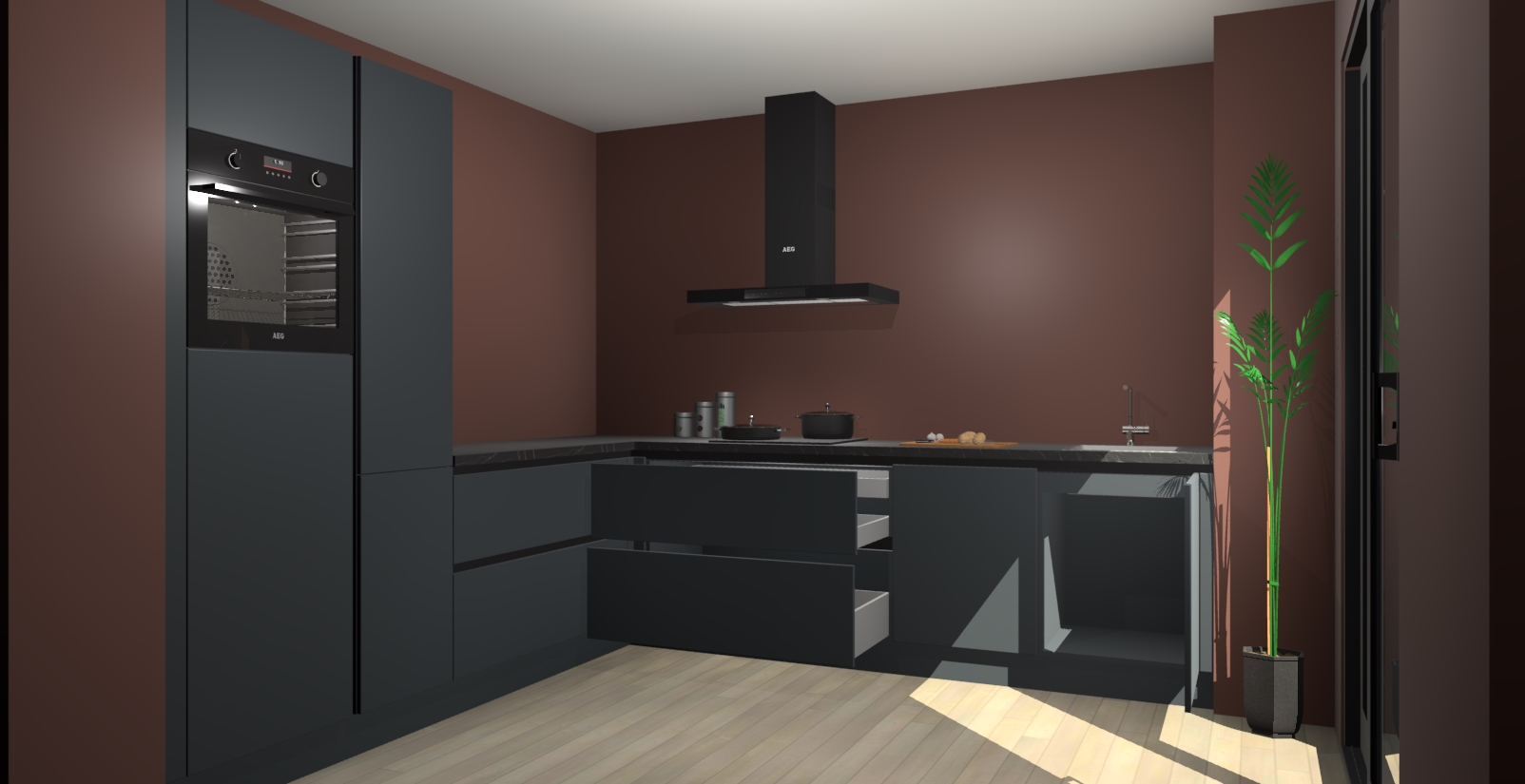 Laat u verrassen door de nieuwste en meest innovatieve keuken van dit moment: De Onyxgrijze greeploze keuken Antibes. Deze chique keuken straalt een stijlvolle sfeer uit die zeker bewondering zal oogsten bij uw gasten. Als u op zoek bent naar voldoende opbergruimte voor al uw keukengadgets en -gerei, dan is dit de perfecte oplossing. Met ingebouwde apparatuur zoals een oven, inductiekookplaat, afzuigkap, vaatwasser en koelkast! U krijgt niet alleen veel opbergruimte, maar ook een betrouwbaar soft close-deursysteem dat ervoor zorgt dat er nooit meer kastdeuren dichtslaan!