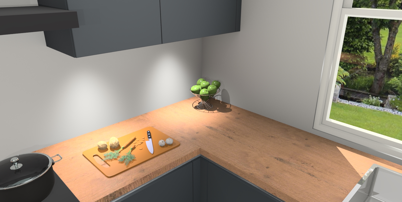 • Bij een hoekwerkblad zijn de hoeken in gevreesd en op maat gemaakt