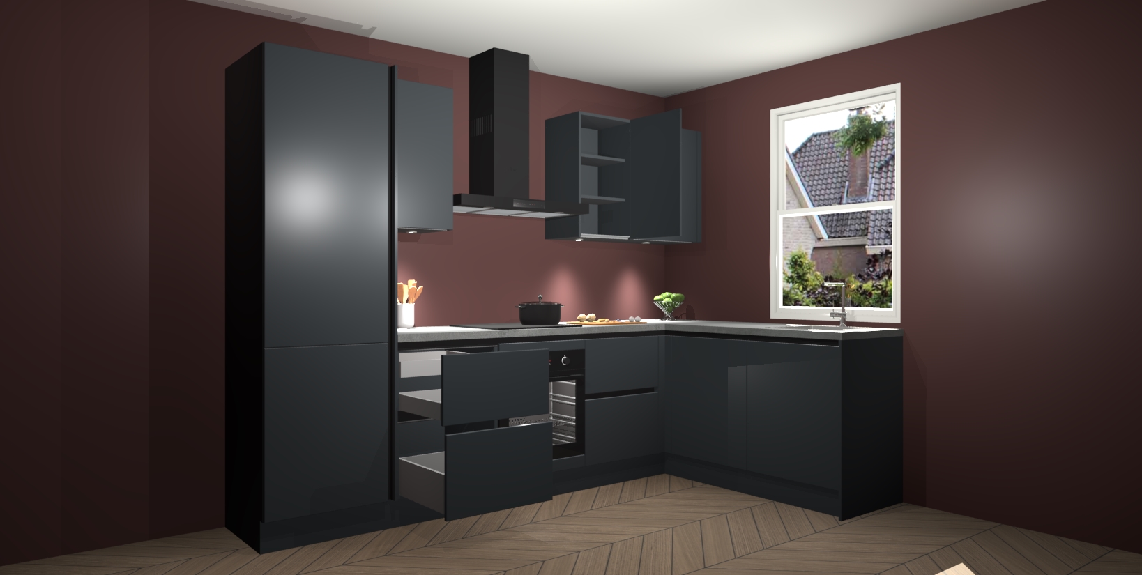 Maak kennis met de trendsettende en luxe Onyxgrijze greeploze keuken Bazel! Deze uitzonderlijke keuken van Duitse kwaliteit is stijlvol, modern en perfect om elk huis mee op te fleuren. De binnenkant van de kasten worden meegenomen in een bijpassende kleur om een samenhangende eigentijdse esthetiek te voltooien. U zult dol zijn op hoe uw pas gerenoveerde keuken eruitziet met de Onyxgrijze editie!