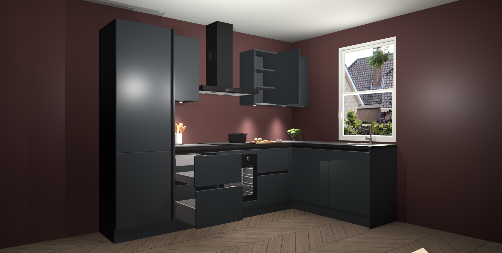 In deze box zijn alle kleuren verzameld van de deuren en werkbladen. Vraag de gratis kleurenbox aan en kijk thuis rustig verder!