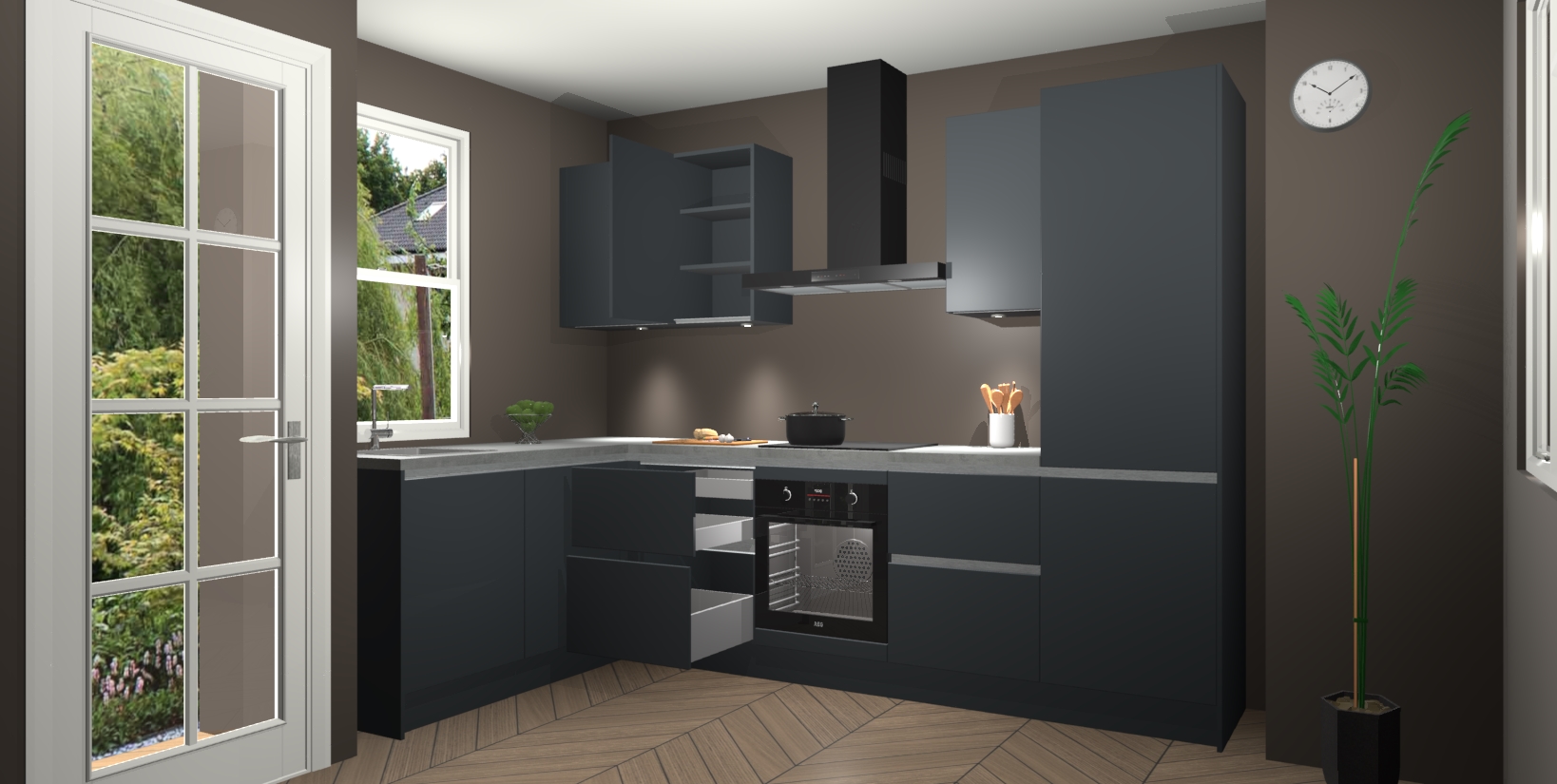 Bent u op zoek naar een strakke, moderne hoekkeuken die uw huis oppept en een moderne uitstraling geeft? Kijk dan niet verder dan de onyxgrijze greeploze keuken Beijing. Deze verbluffende hoekkeuken tilt hedendaags design naar een hoger niveau. Qua stijl is deze chique hoekkeuken voorzien van onyxgrijze accenten, om een strakke maar opvallende look te creëren. De binnenkant van de kasten is afgewerkt in dezelfde prachtige onyxgrijze kleur voor extra esthetische aantrekkingskracht.