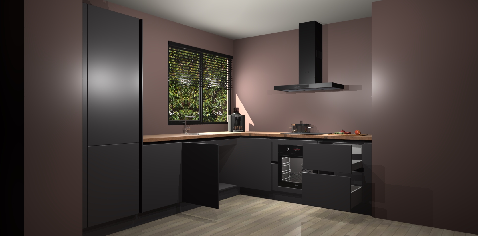 Met een modern, tijdloos design en ruime opslagruimte, zult u zich in no-time thuis voelen in uw nieuwe keuken. Uw leven wordt eenvoudiger met de soft-close deuren die voor het ultieme stille comfort zorgen - geen geluid dat u stoort terwijl u kookt. Ook is de keuken voorzien van 5 ingebouwde apparaten: een oven, inductie kookplaat, afzuigkap, vaatwasser en koelkast. Deze kunnen gemakkelijk na bestelling worden bijgewerkt naar AEG - waardoor uw luxe ervaring compleet is.