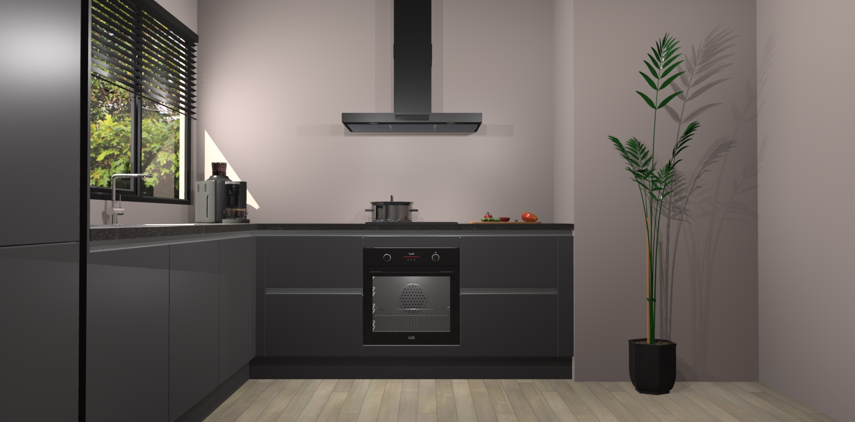 Met een modern, tijdloos design en ruime opslagruimte, zult u zich in no-time thuis voelen in uw nieuwe keuken. Uw leven wordt eenvoudiger met de soft-close deuren die voor het ultieme stille comfort zorgen - geen geluid dat u stoort terwijl u kookt. Ook is de keuken voorzien van 5 ingebouwde apparaten: een oven, inductie kookplaat, afzuigkap, vaatwasser en koelkast. Deze kunnen gemakkelijk na bestelling worden bijgewerkt naar AEG - waardoor uw luxe ervaring compleet is.