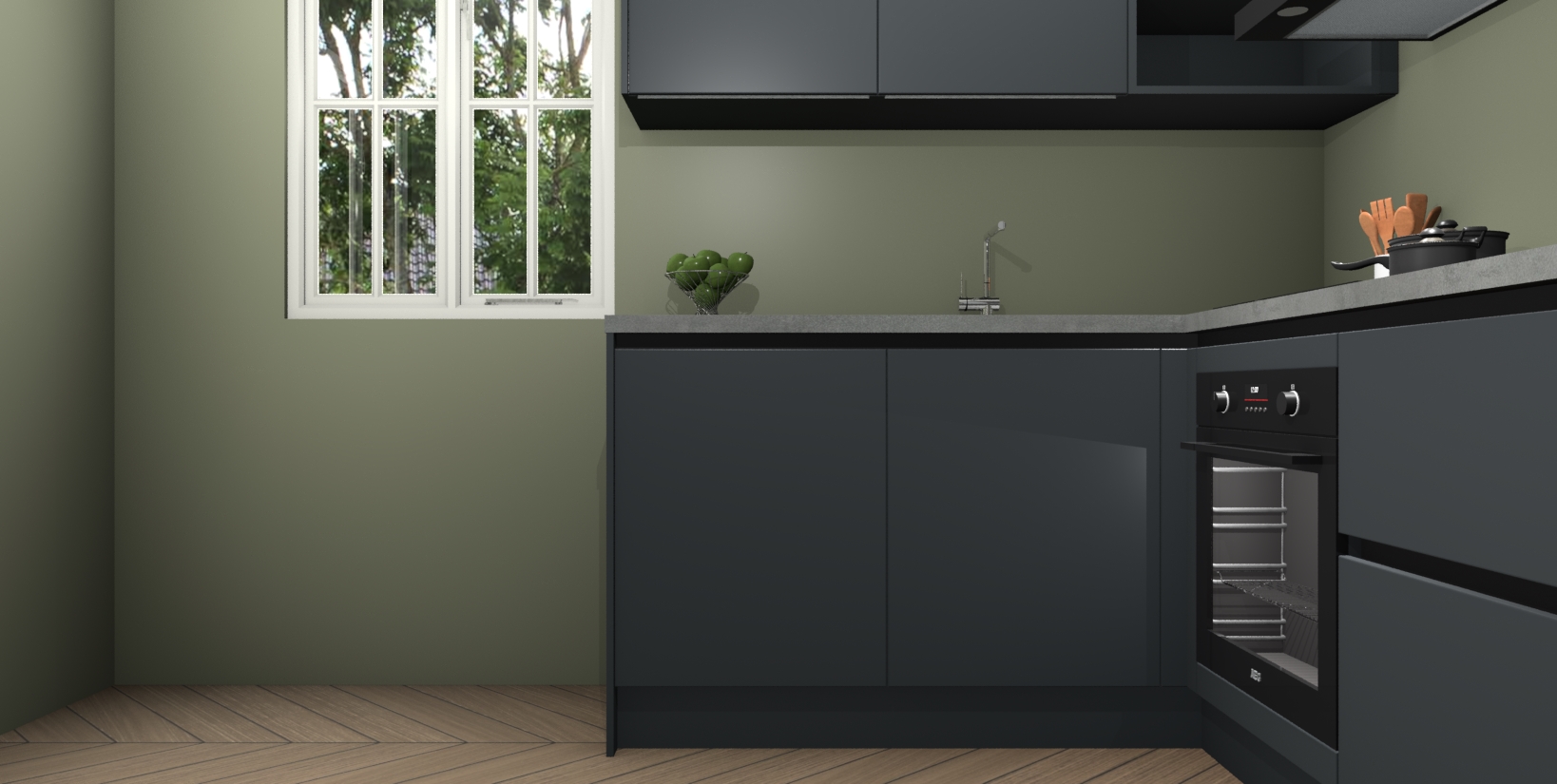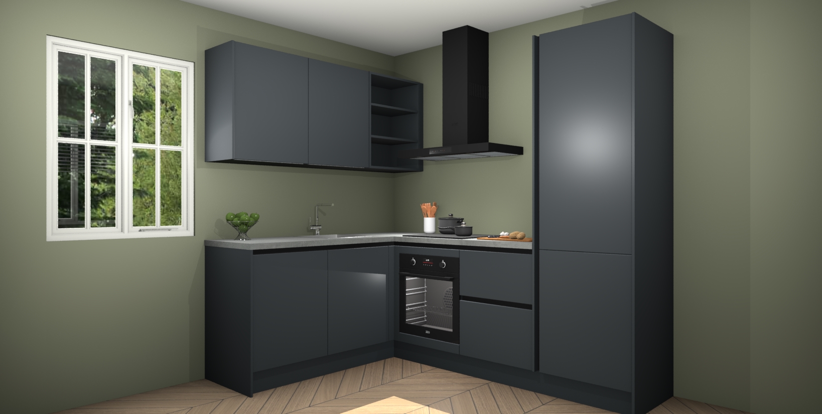 Maak kennis met de Onyxgrijze greeploze keuken Boekarest, een moderne hoekkeuken waar al uw vrienden en familie jaloers op zullen zijn! Het verbluffende mooie ontwerp past in elk interieur en is een ideale keuze voor wie op zoek is naar een klassieke, maar verfijnde look.