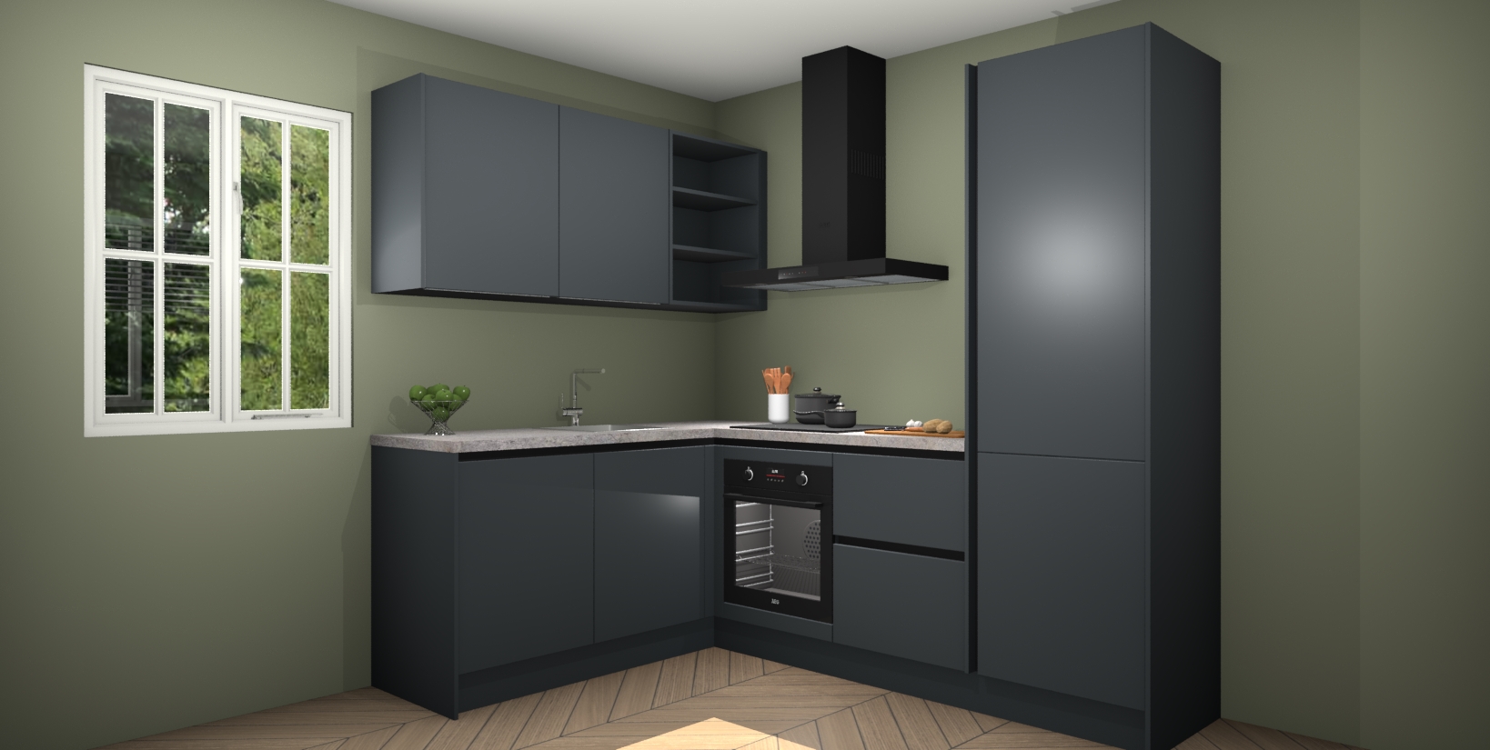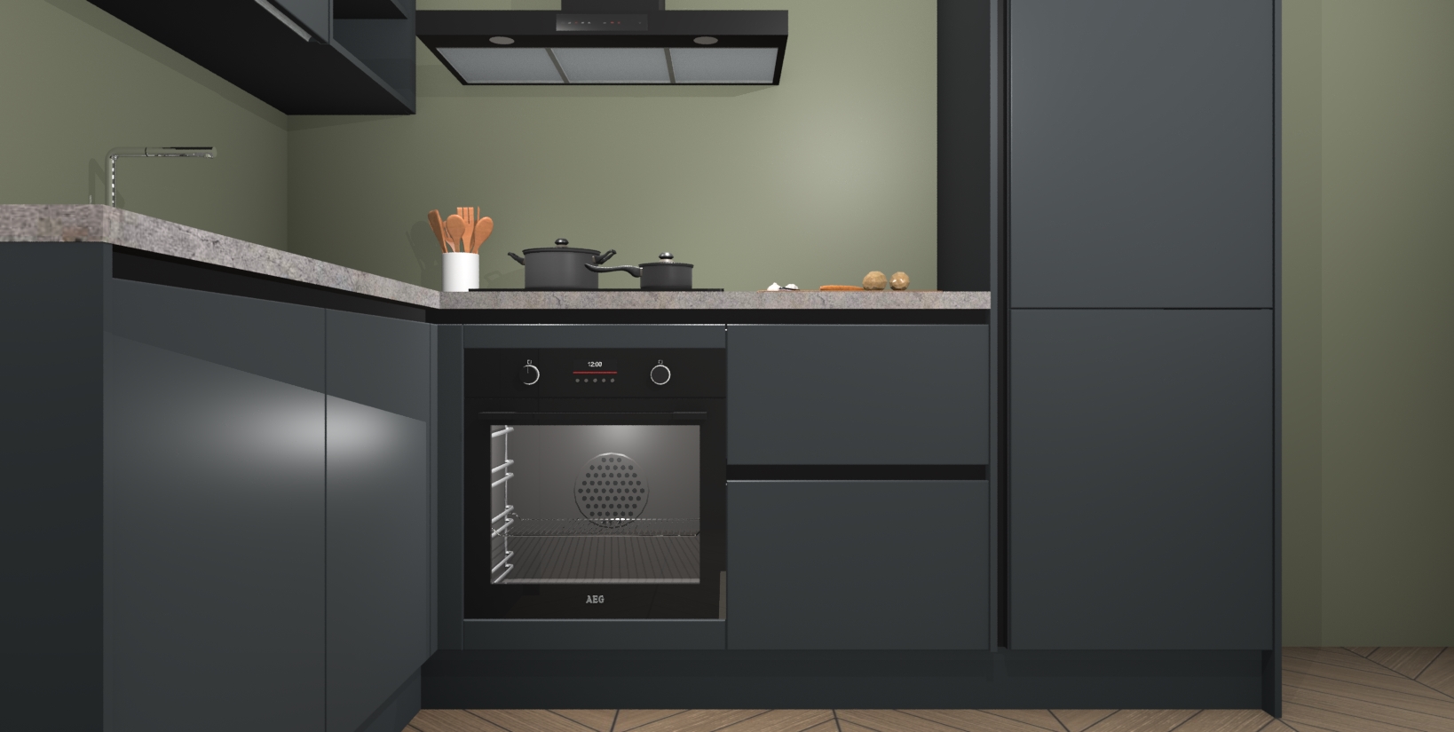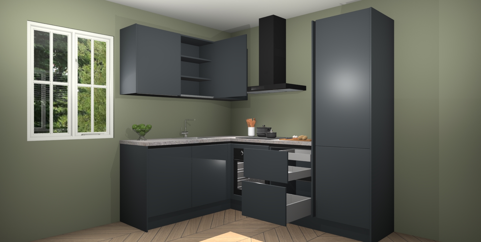 Maak kennis met de Onyxgrijze greeploze keuken Boekarest, een moderne hoekkeuken waar al uw vrienden en familie jaloers op zullen zijn! Het verbluffende mooie ontwerp past in elk interieur en is een ideale keuze voor wie op zoek is naar een klassieke, maar verfijnde look.