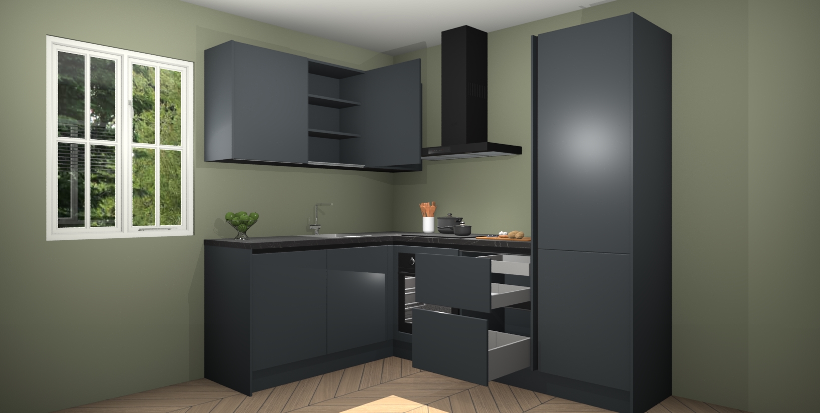 Maak kennis met de Onyxgrijze greeploze keuken Boekarest, een moderne hoekkeuken waar al uw vrienden en familie jaloers op zullen zijn! Het verbluffende mooie ontwerp past in elk interieur en is een ideale keuze voor wie op zoek is naar een klassieke, maar verfijnde look.